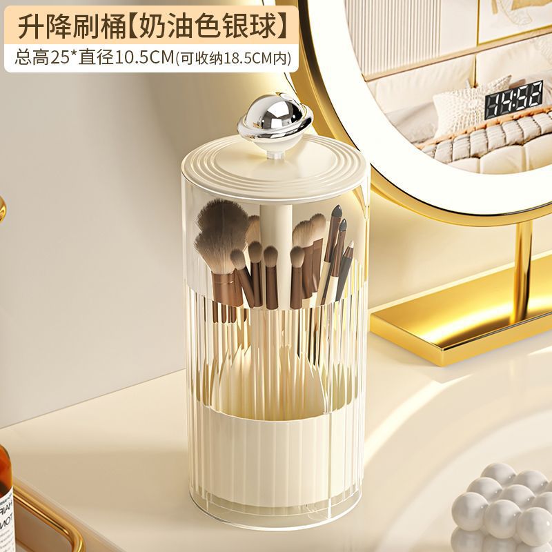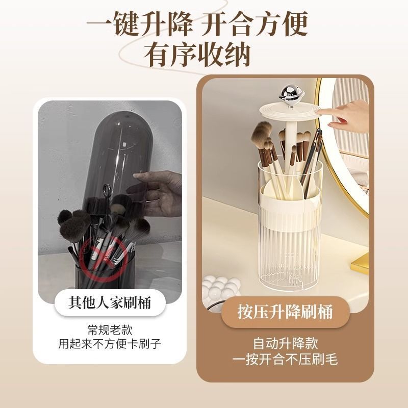 Туба для хранения кистей для макияжа, пылезащитный настольный ящик для хранения косметики, автоматический подъемный стержень для кистей для карандашей для бровей