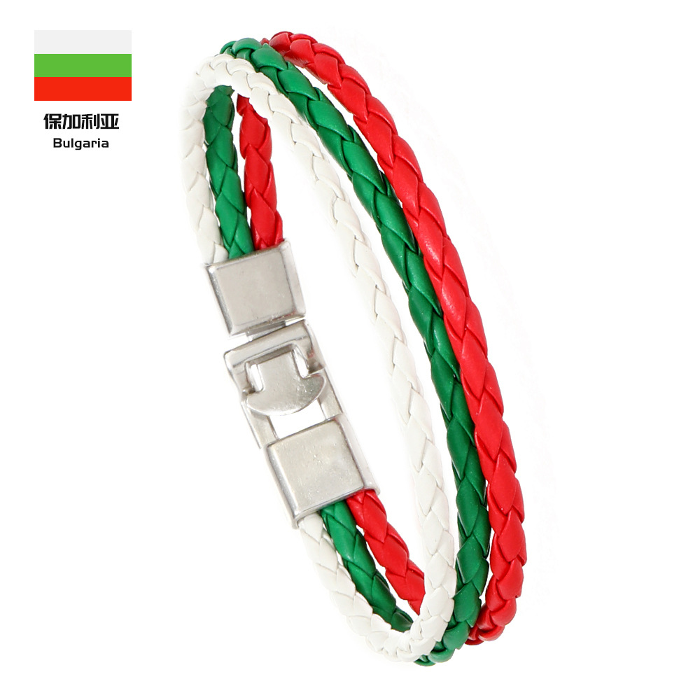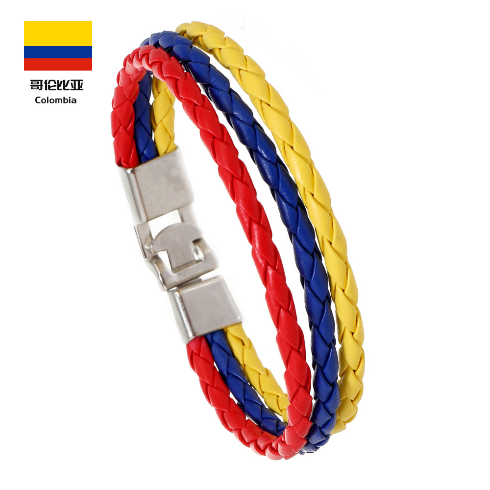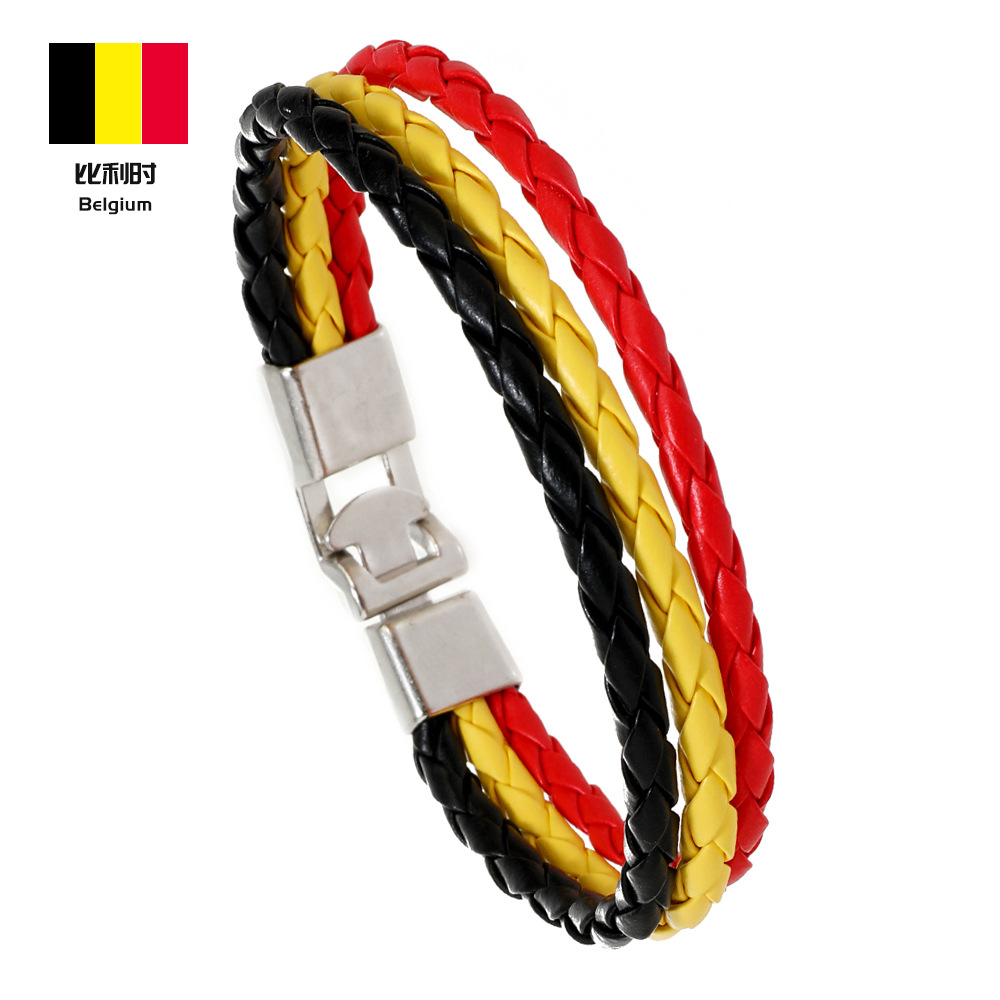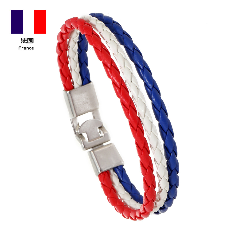 Трансграничная внешняя торговля новый тканый национальный флаг цвет кожаный браслет ПУ имитация кожаный браслет Кубок мира простой мужской браслет