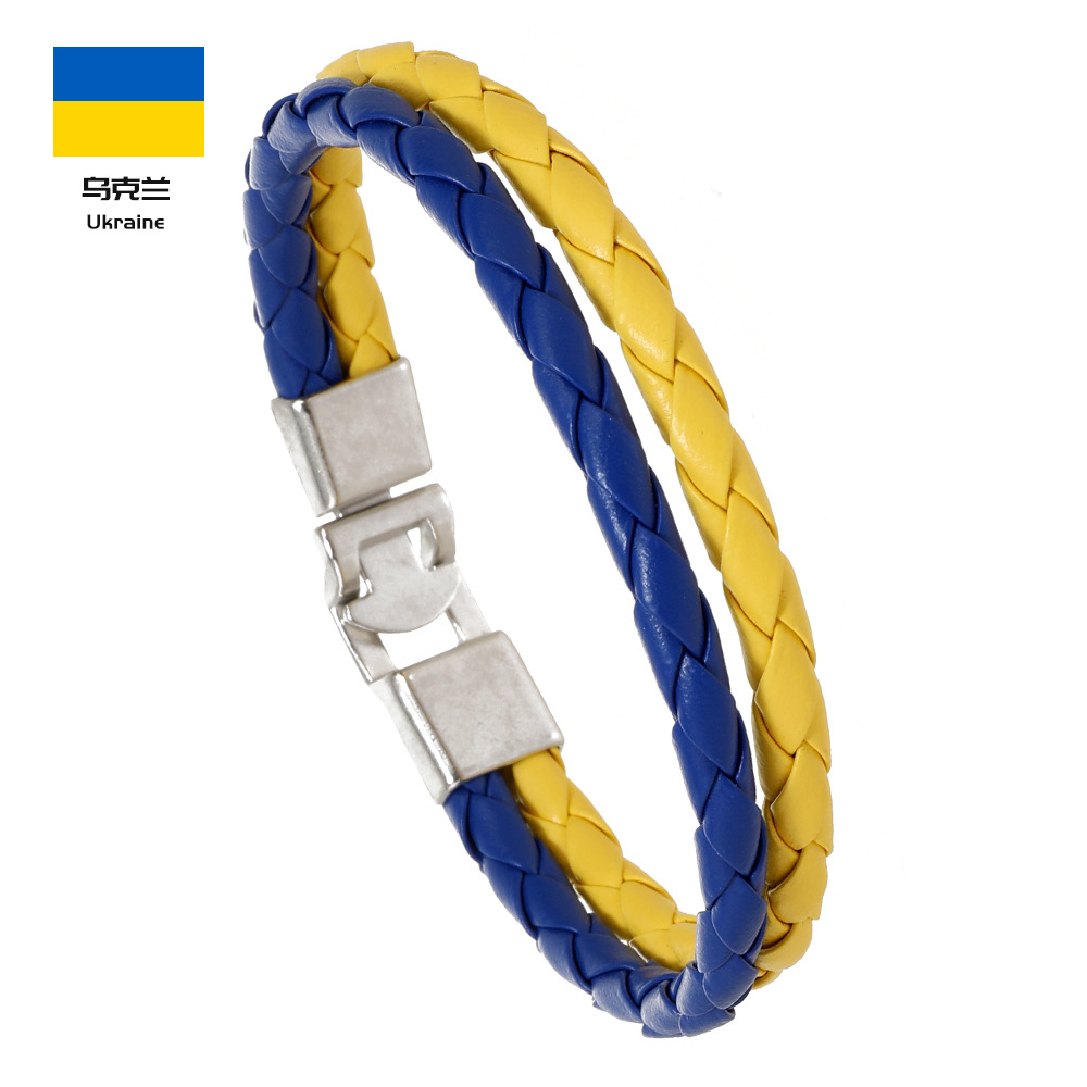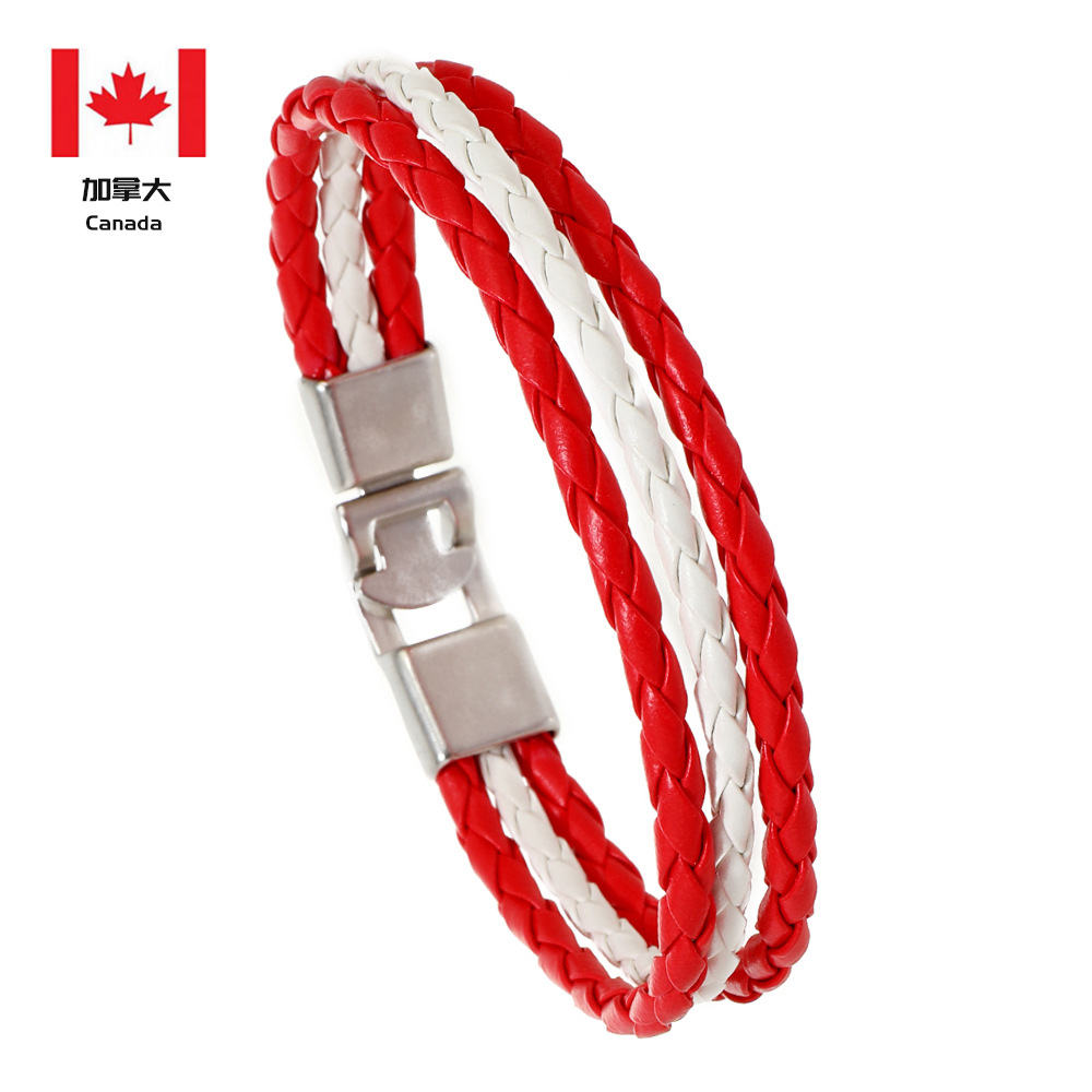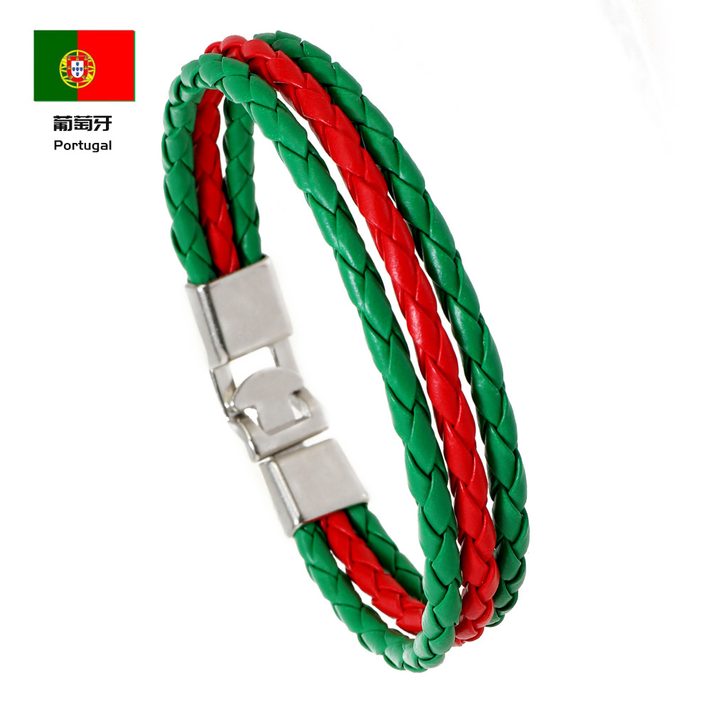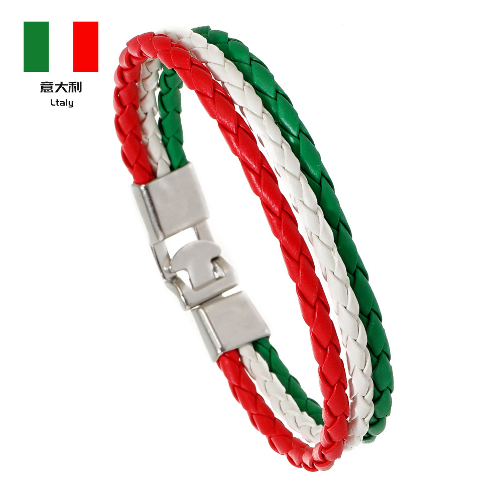 Трансграничная внешняя торговля новый тканый национальный флаг цвет кожаный браслет ПУ имитация кожаный браслет Кубок мира простой мужской браслет