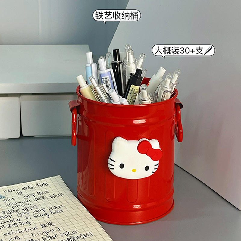 Милый держатель для ручек Кэти, маленькое железное ведро, японский стиль, сердце для девочек, украшение для гостиной, офиса, студента, канцелярские принадлежности, хранение кистей для макияжа