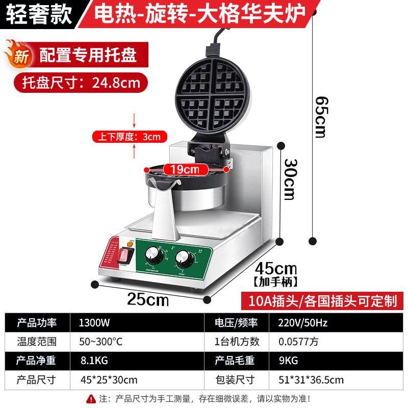 Легкая роскошная модель - электрический нагрев - вращающаяся - большая вафельница [со специальным поддоном]