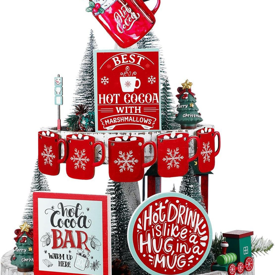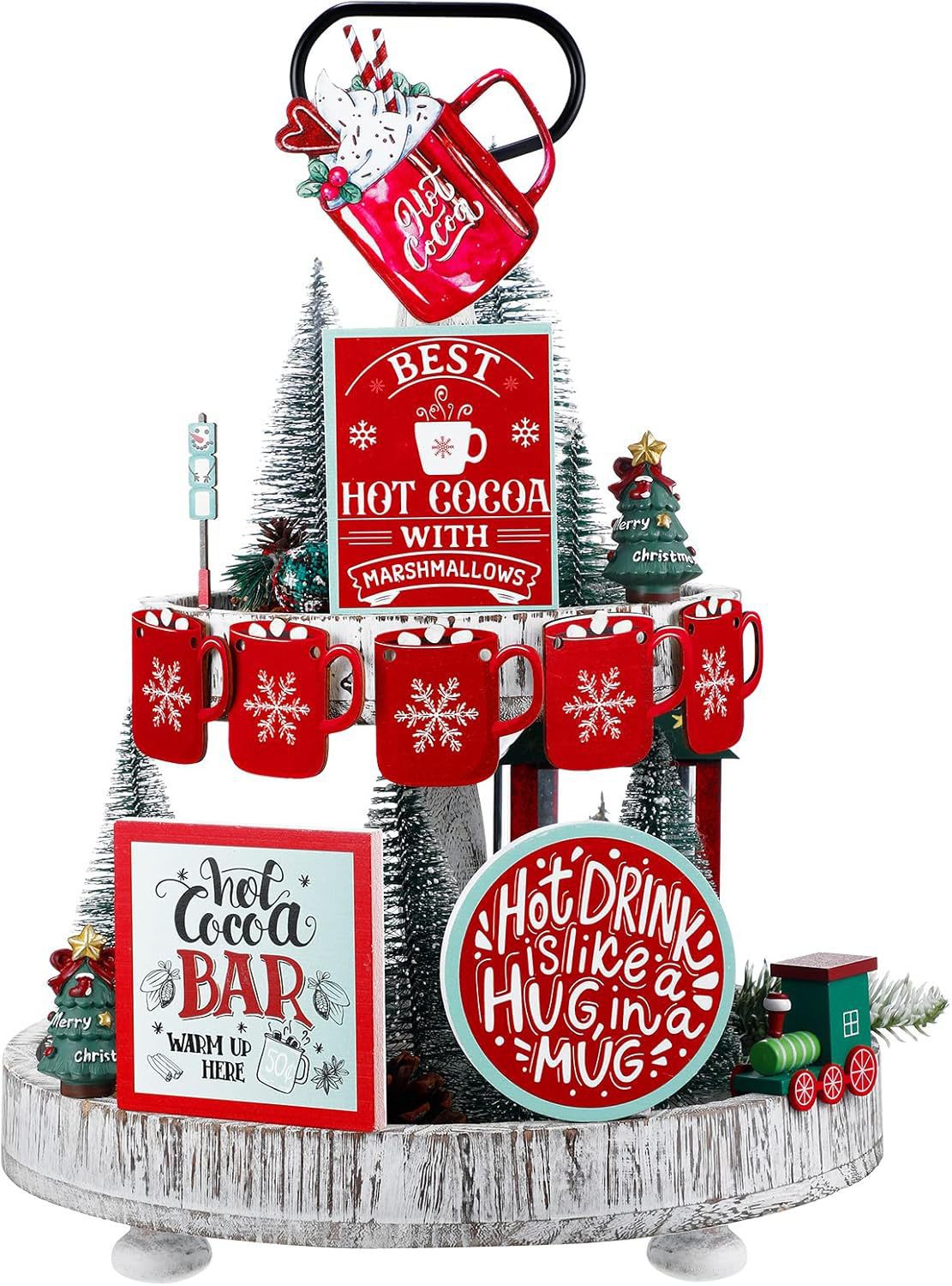 10 шт. Зимний многослойный поднос декоративный набор, горячий какао столешница декоративный сельский дом многослойный поднос зимний