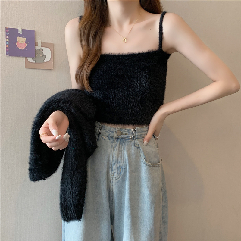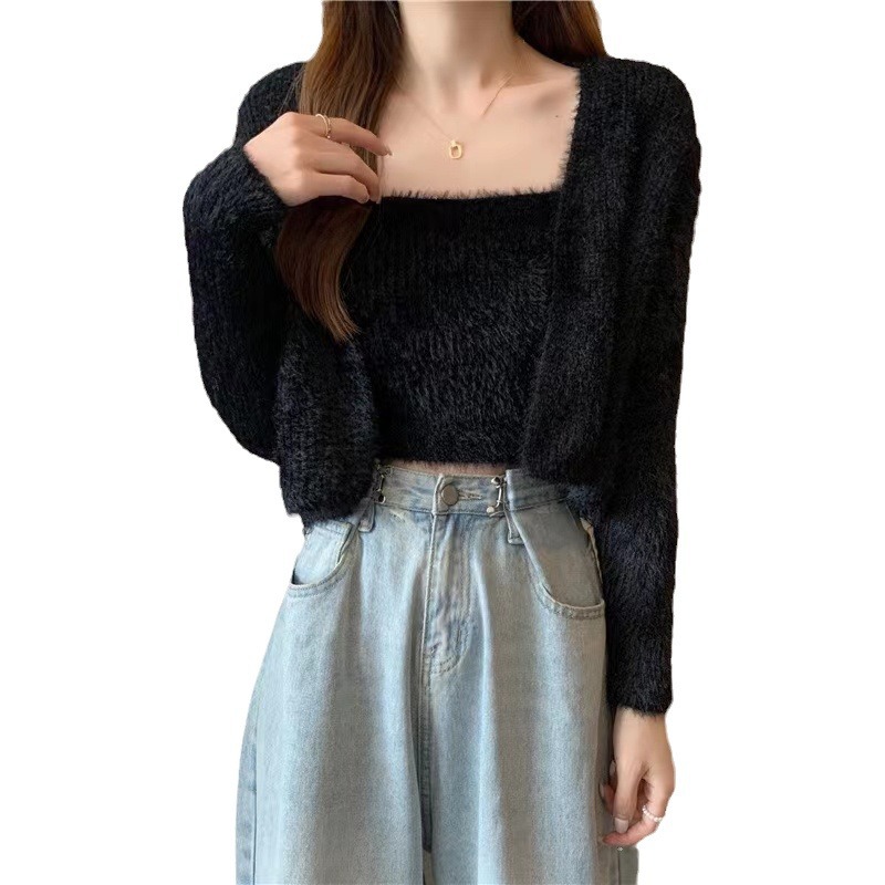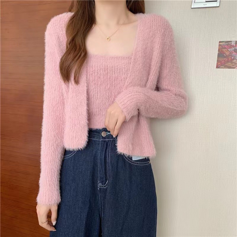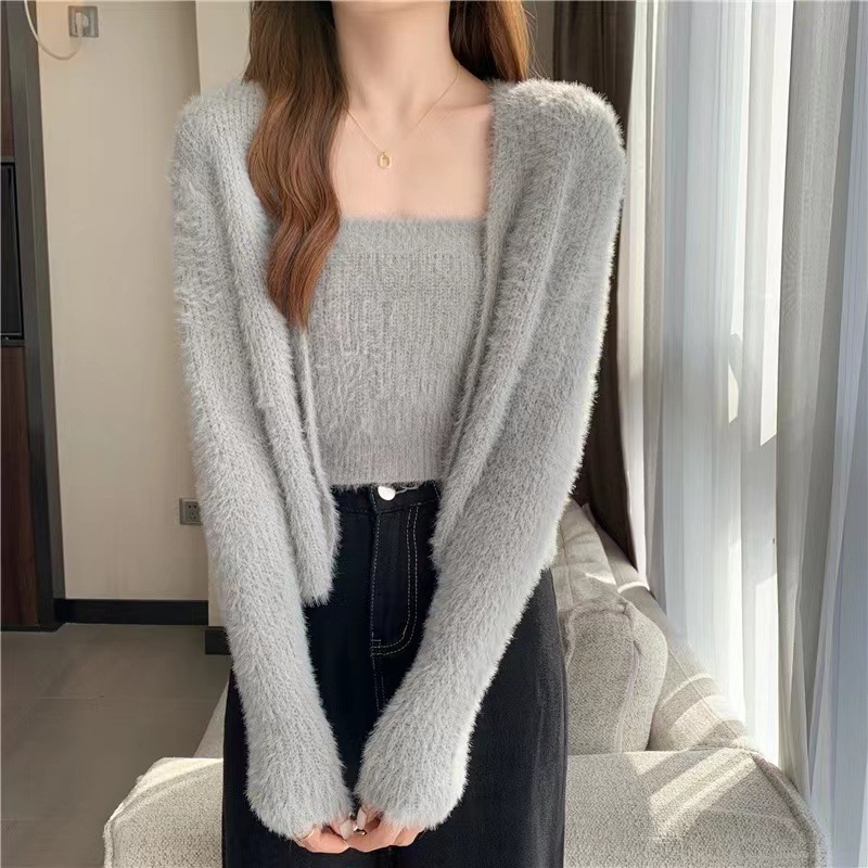 Главная страница > Корейский маленький ароматный ветер сексуальный вязаный кардиган 2024 осень-зима новый имитационный норковый слинг набор трикотажный свитер женский
