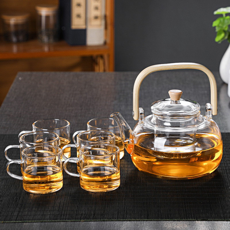 Термостойкий стеклянный чайник Посуду для кипячения чая Электрическая керамическая плита Чайник Электрическая плита для нагрева чая Бытовой чайник Белый чайный набор костюм