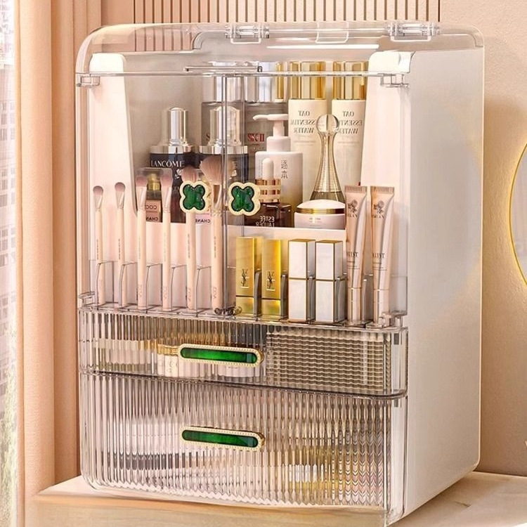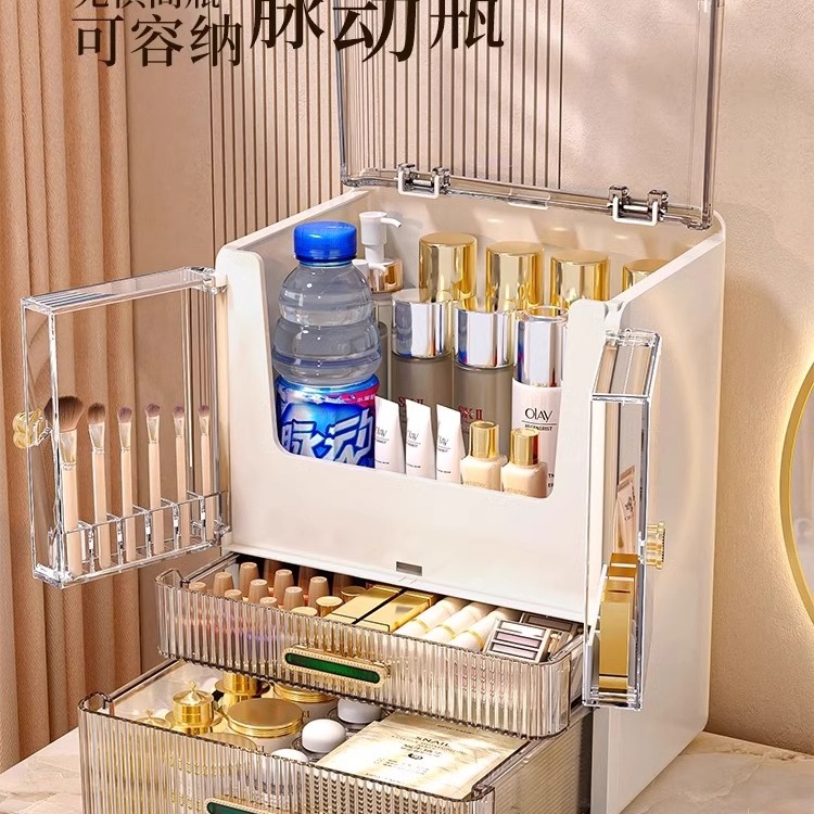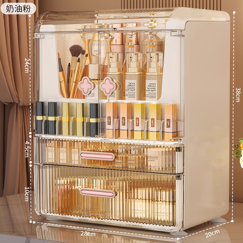 [Крем-пудра] - Большая вместимость [Двойные дверцы + верхняя крышка + сетка для губной помады]
