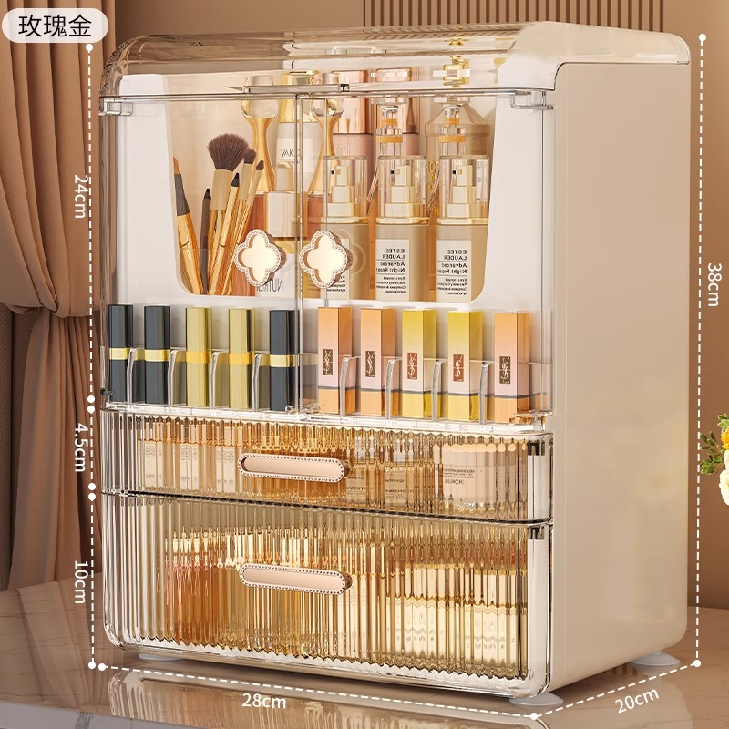 [Розовое золото] - Большая вместимость - [Двойные дверцы + верхняя крышка + сетка для губной помады]