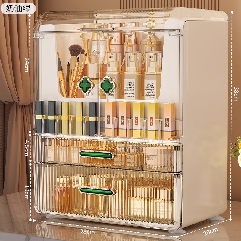 [Кремово-зеленый] — большая вместимость [Двойные дверцы + верхняя крышка + отделение для губной помады]