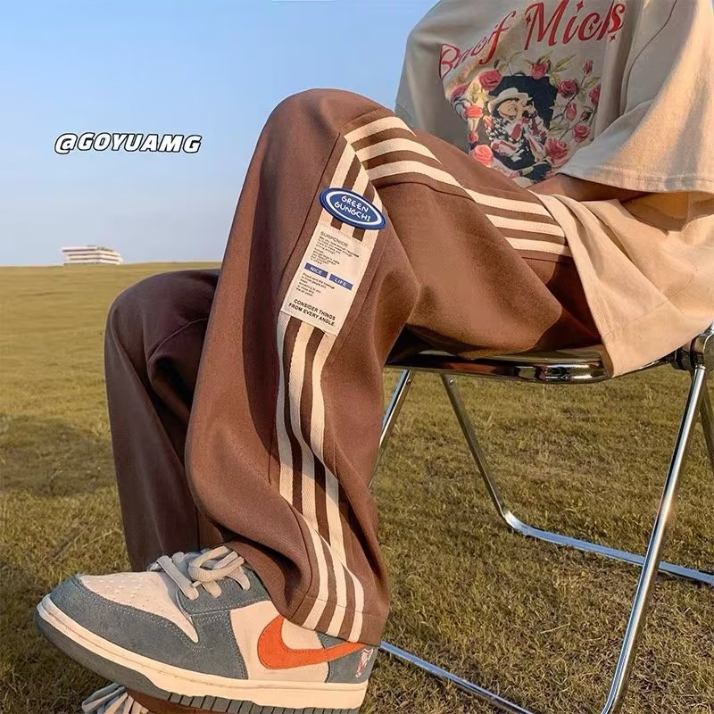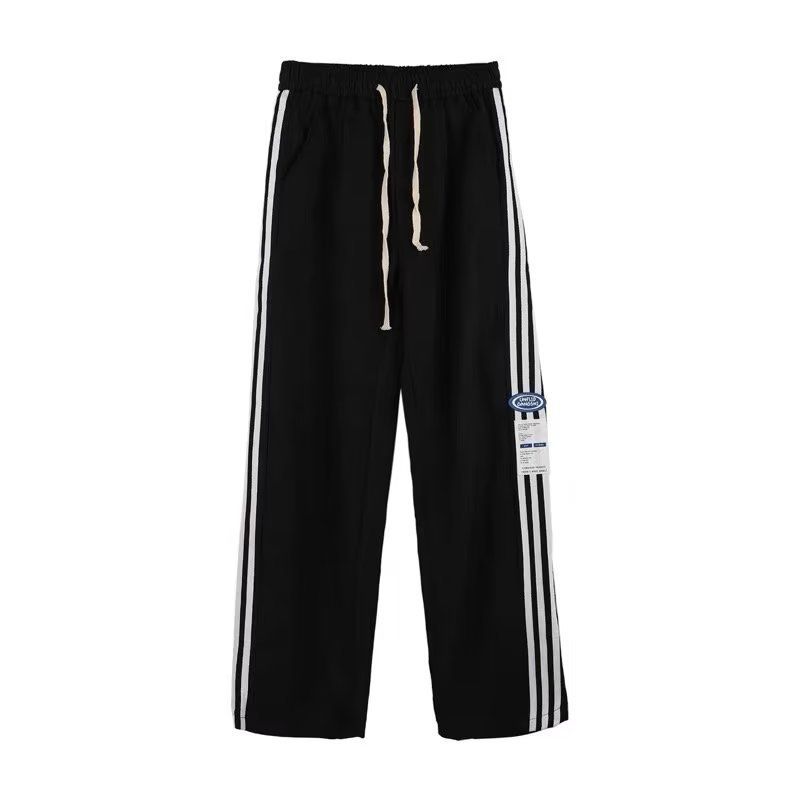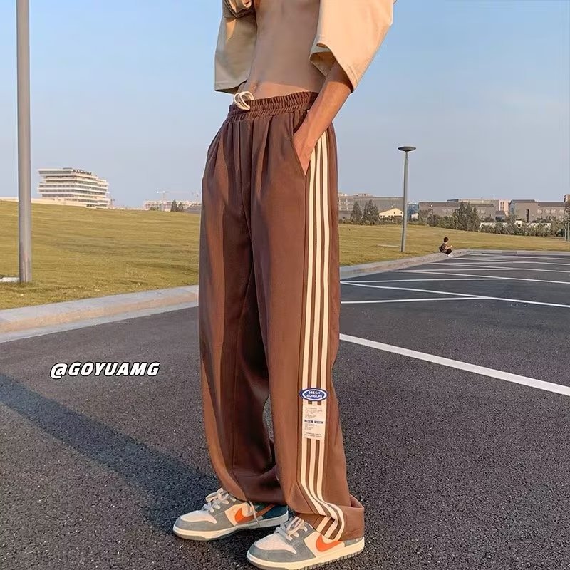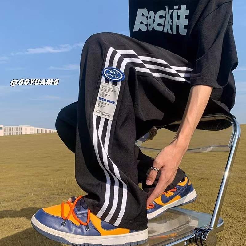 Полосатые повседневные брюки мужские осенние гонконгские ветры прилив наклейки свободная дикая улица прямые широкие спортивные брюки