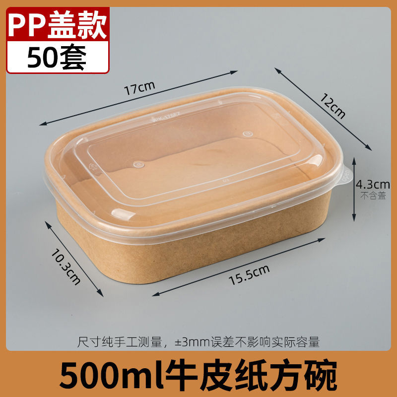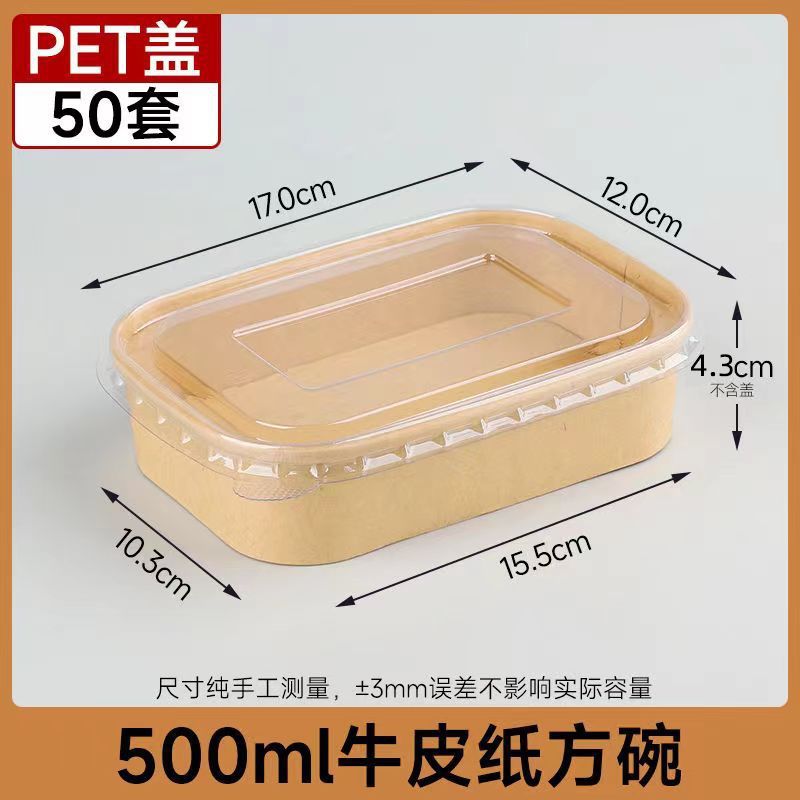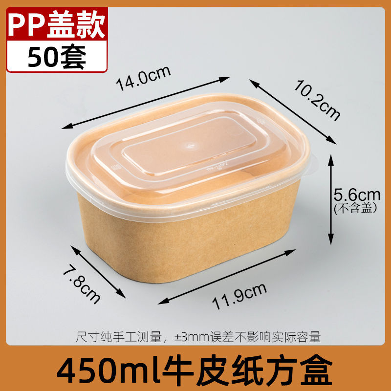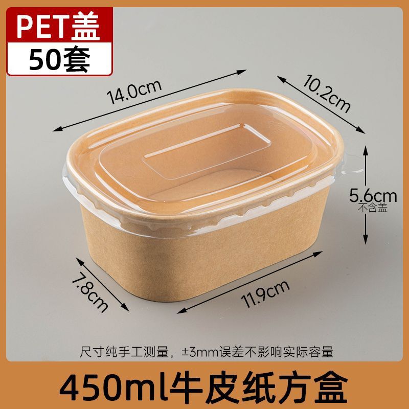 450ml крафт-бумага квадратная коробка PP крышка 50 комплектов