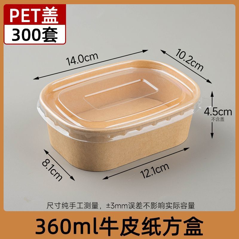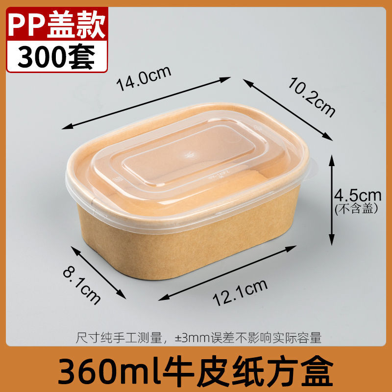 360ml крафт-бумага квадратная коробка PP крышка 300 комплектов