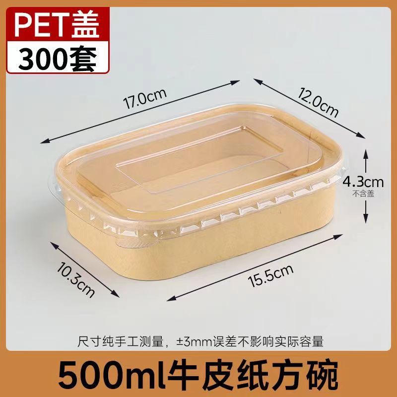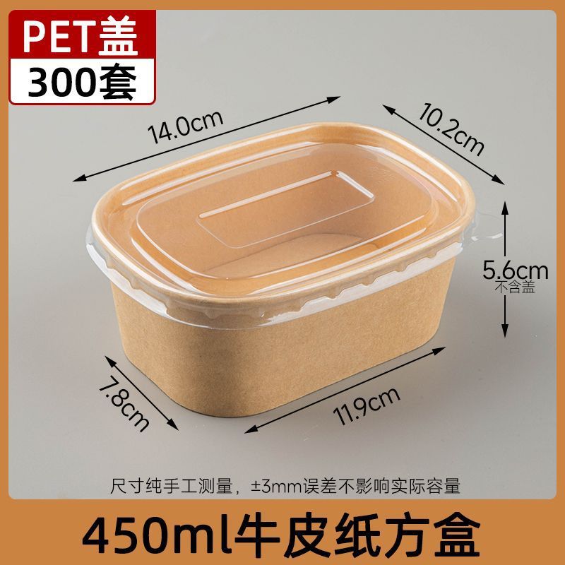 450ml крафт-бумага квадратная коробка PP крышка 300 комплектов