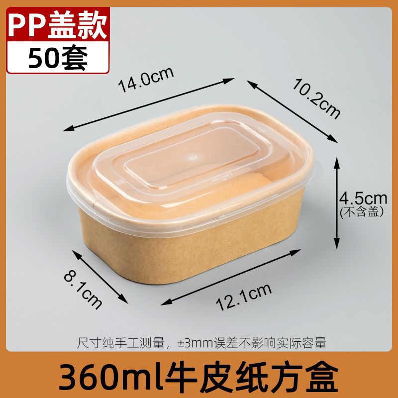 360ml крафт-бумага квадратная коробка PP крышка 50 комплектов