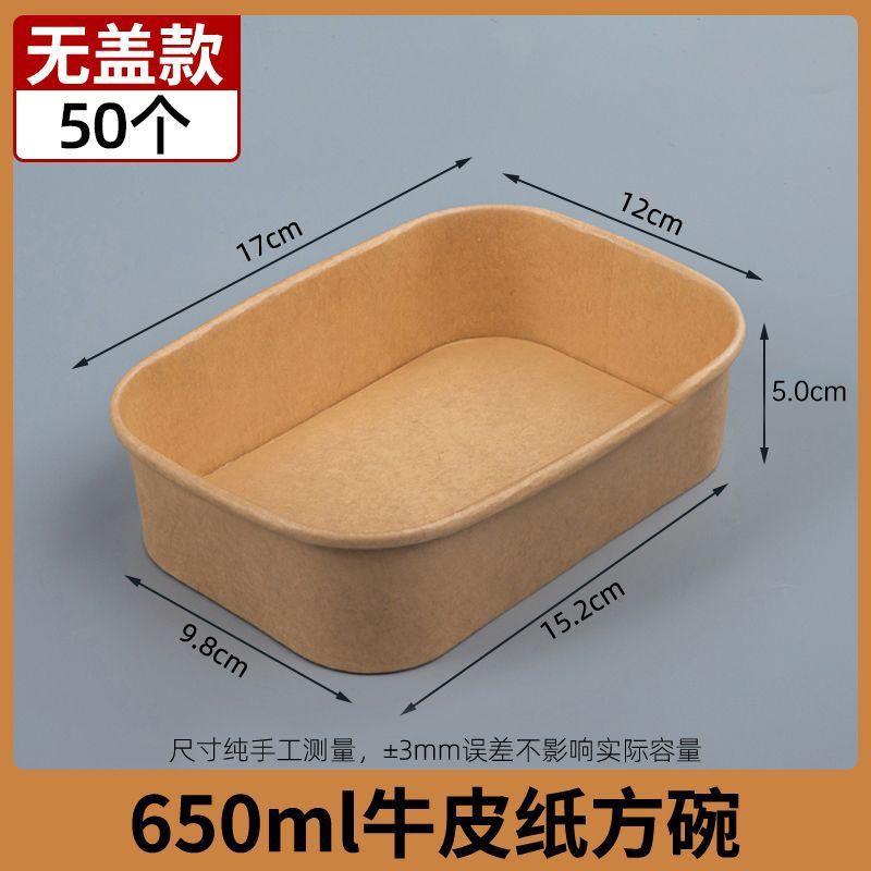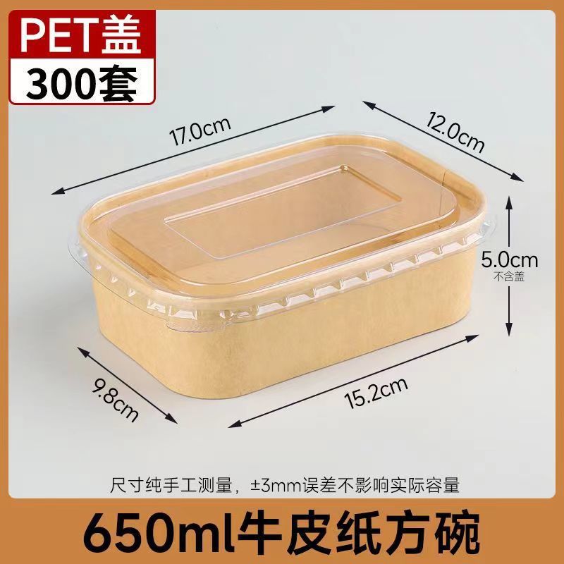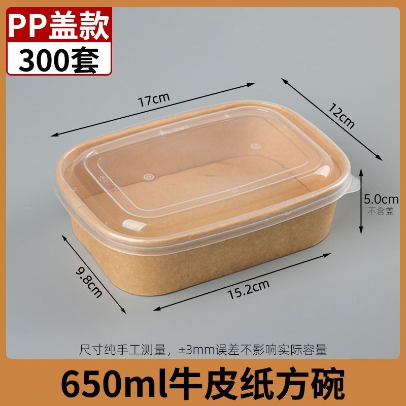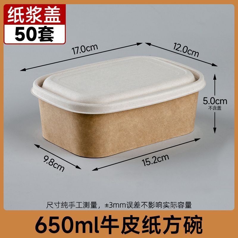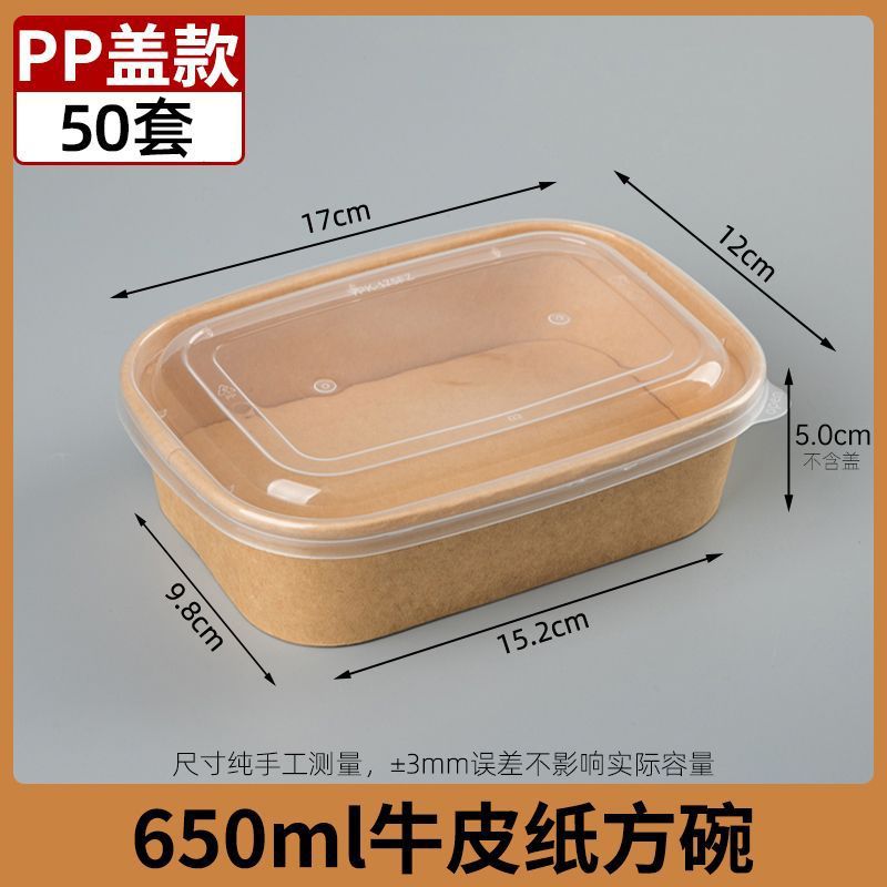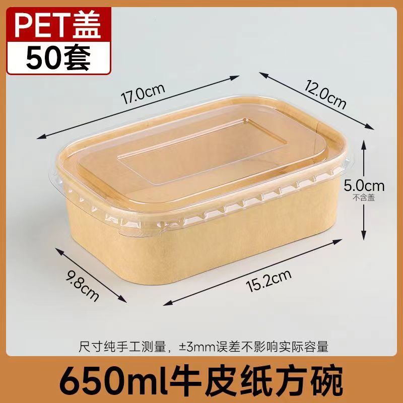 Одноразовые крафт-бумага прямоугольная коробка быстрого питания пластиковая крышка 650 бенто жареная коробка на вынос 50 комплектов фабрики