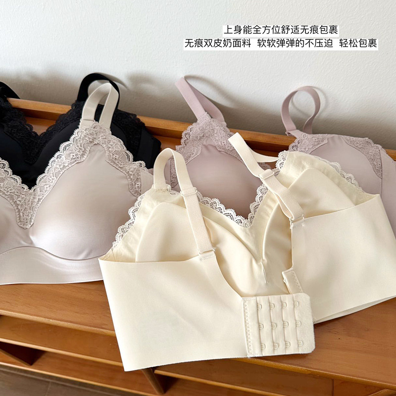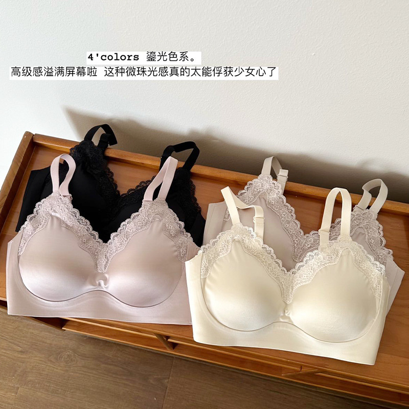 Французское кружевное атласное нижнее белье для женщин с маленькой грудью, бесшовный бюстгальтер с фиксированной чашкой и пуш-ап, летний тонкий стиль, новый стиль 2025 года