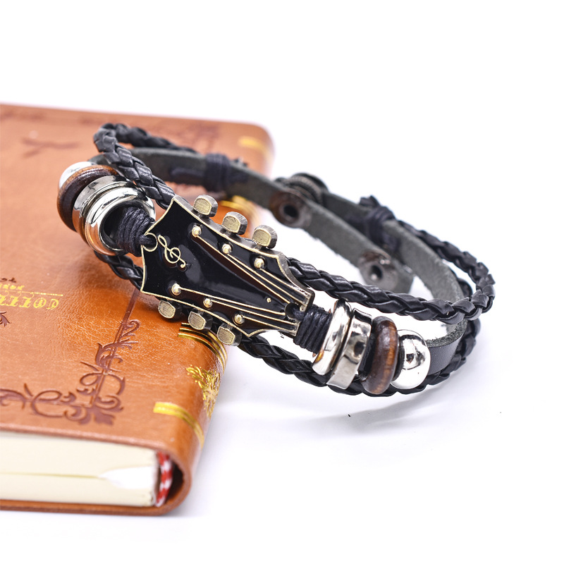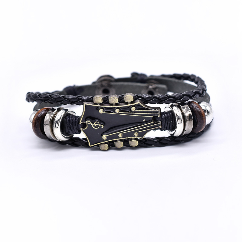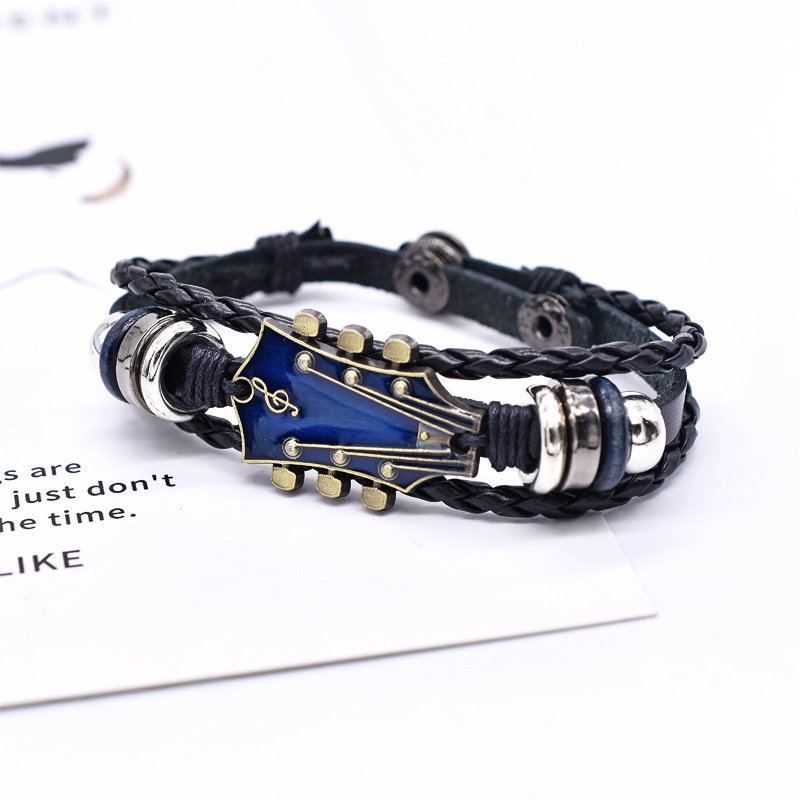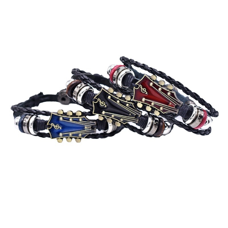 Temu Горячая продажа ретро гитара национальный флаг цвет кожаный тканый браслет из цинкового сплава музыкальные ноты браслет на пряжке
