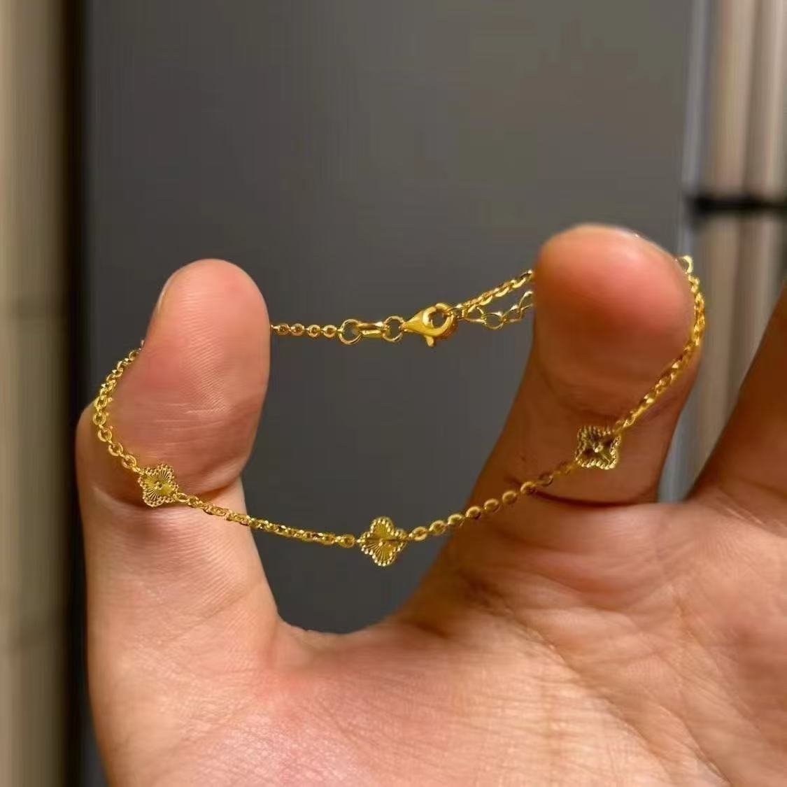Новый легкий роскошный изысканный золотой четырехлистный клеверный браслет с тремя цветами для женщин, нишевый дизайн, темперамент, универсальные высококачественные ручные украшения