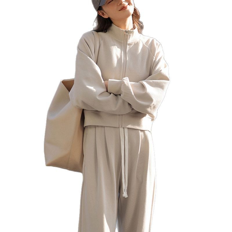Главная страница > Жемчужная ткань повседневная спортивная одежда из двух частей тонкая куртка на молнии свитер мода высокого уровня чувство брюки костюм женский