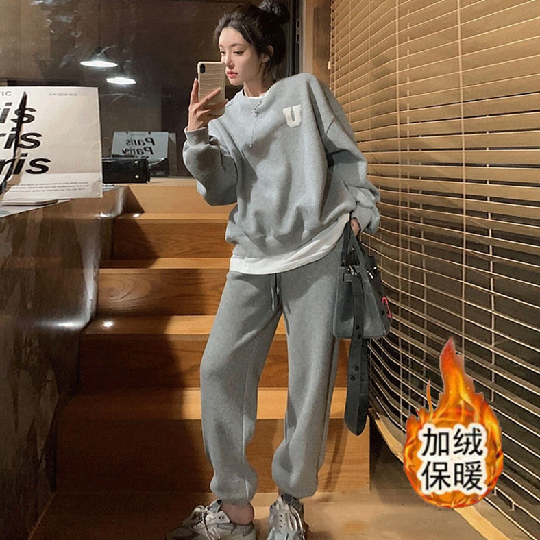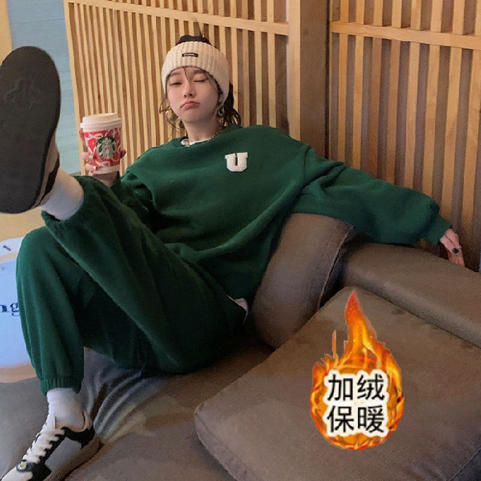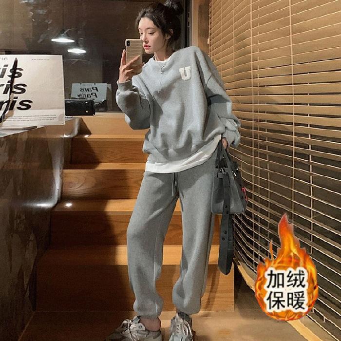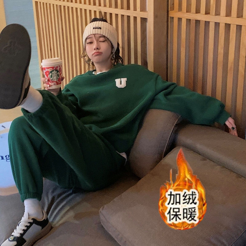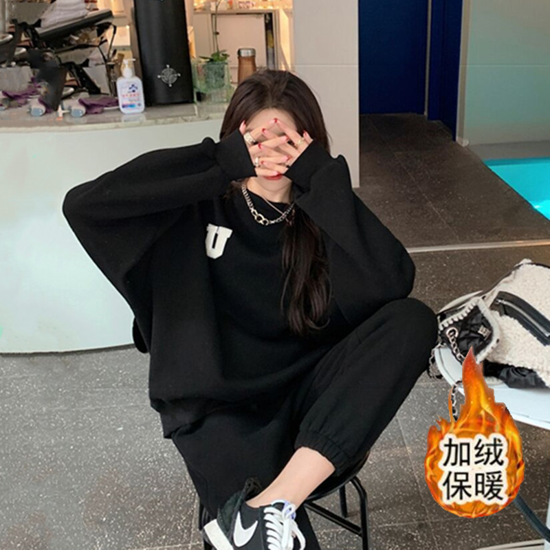 Главная страница > Плюшевая утолщение повседневная мода спортивный костюм женский осенний и зимний новый свободный свитера брюки из двух частей