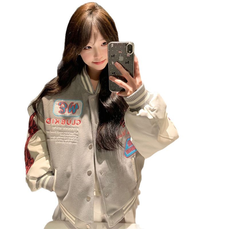 Главная страница > Американская бейсбольная куртка в стиле ретро с тяжелой вышивкой и воротником-стойкой для женщин, весна и осень, модный брендовый дизайн, нишевая куртка, топ