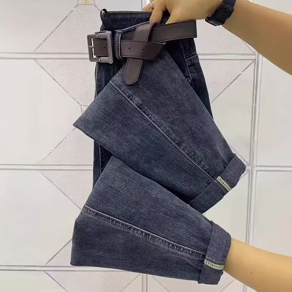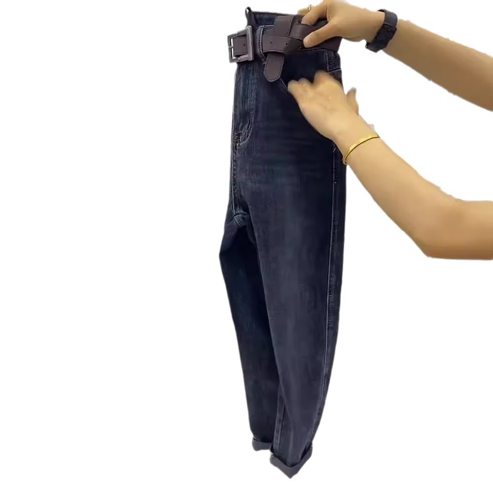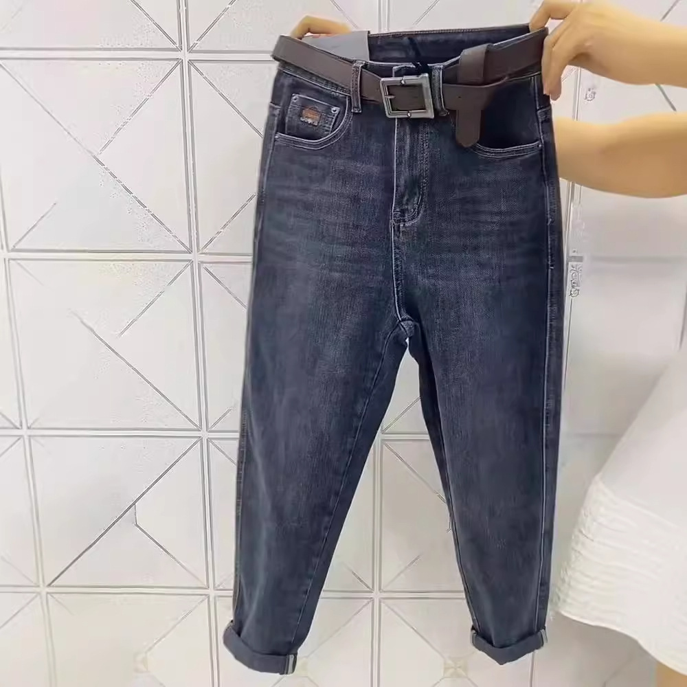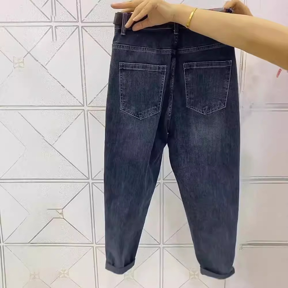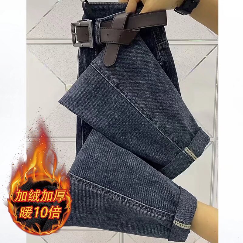Главная страница > Женские брюки грушевидной формы, свободные прямые джинсы больших размеров на флисовой подкладке, осенние и зимние укороченные шаровары для женщин больших размеров.