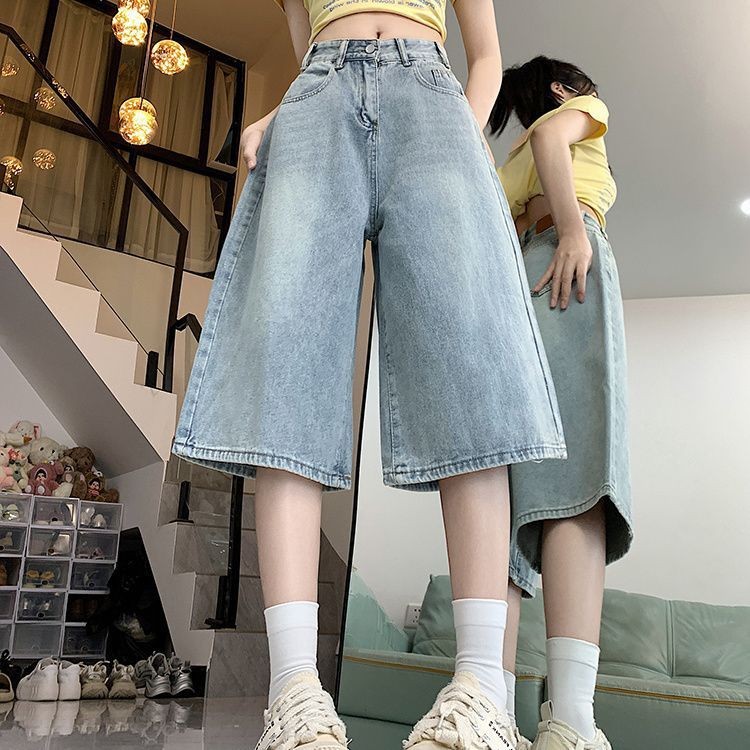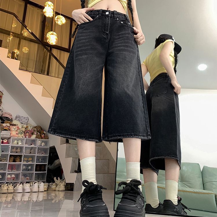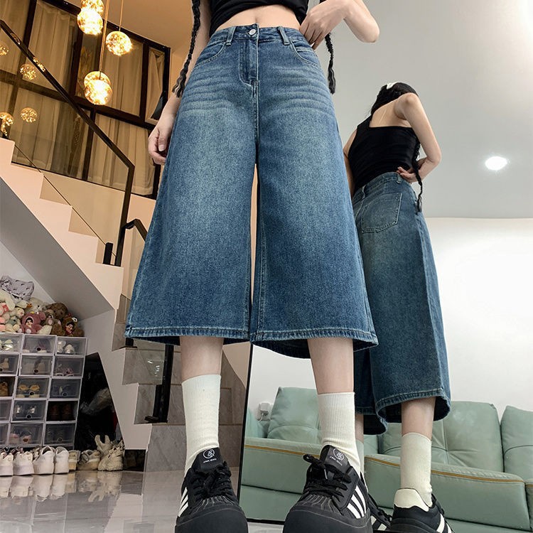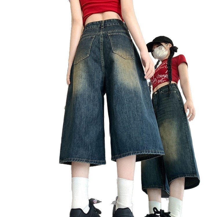 Главная страница > Американские укороченные джинсовые брюки в стиле ретро с широкими штанинами для женщин, летние свободные прямые брюки с высокой талией большого размера, оптовая продажа