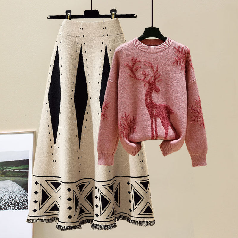 2892 красный свитер абрикосовая юбка [набор из двух частей