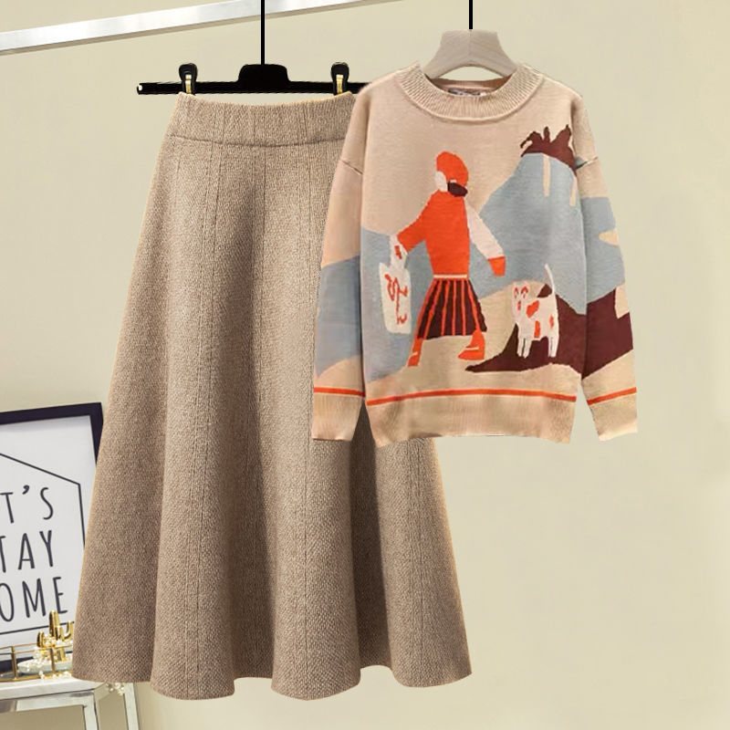 2957 Глубокий кофейный свитер хаки юбка [набор из двух частей