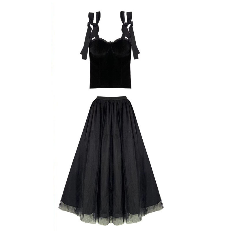 Сексуальная львиная черная обертка с бантом топ тонкий сетка юбка модный костюм юбка