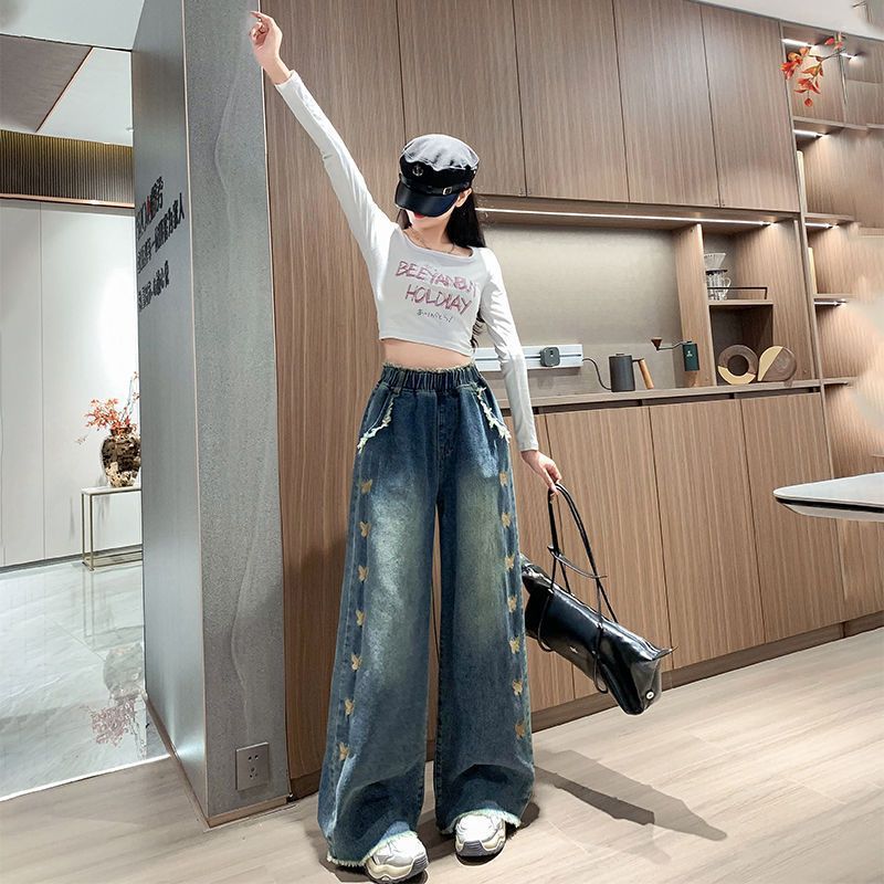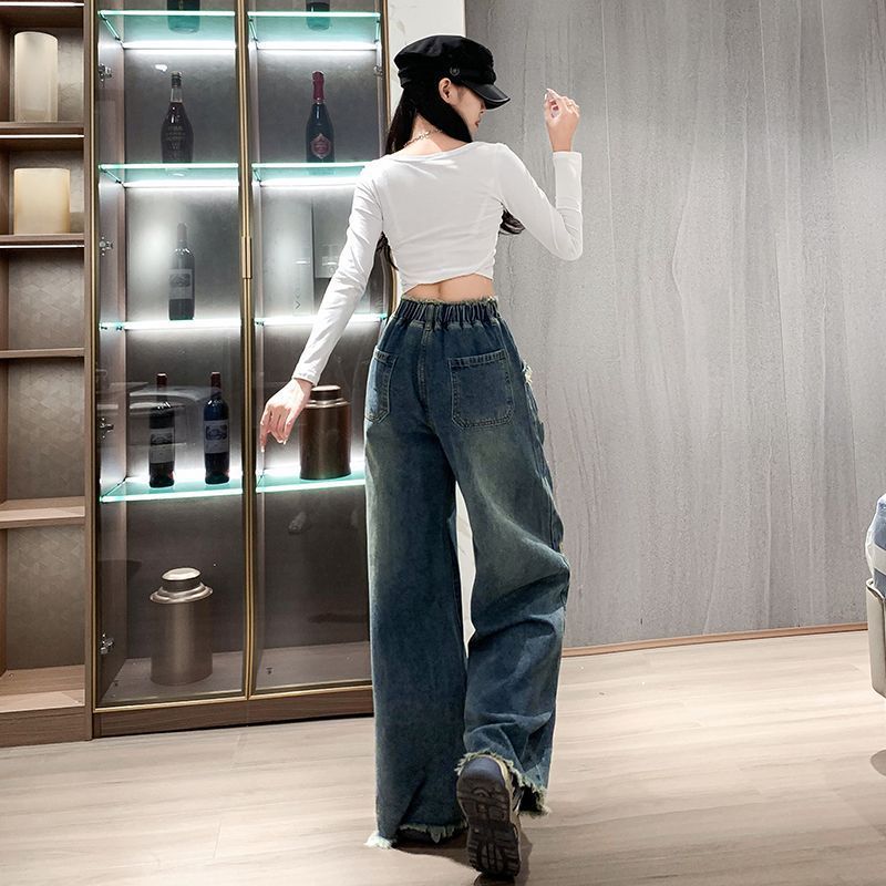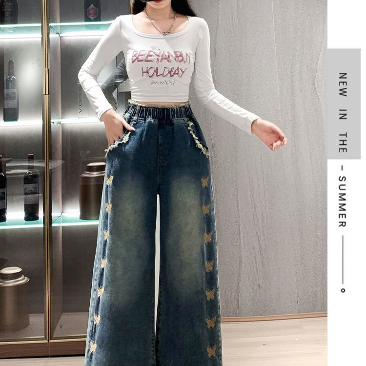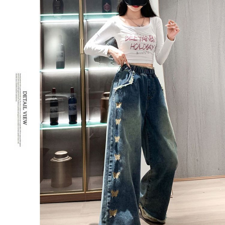 Главная страница > Женские джинсы больших размеров, прямые широкие свободные брюки длиной до пола с высокой талией, утягивающие весенне-осенние студенческие свободные эластичные брюки