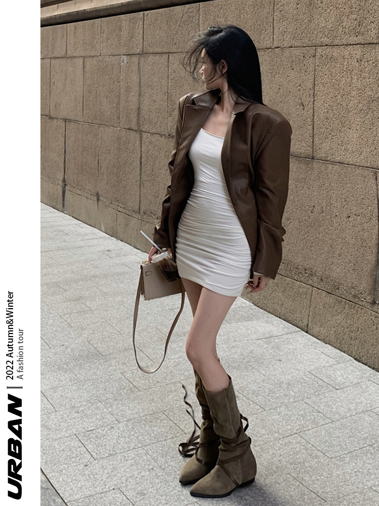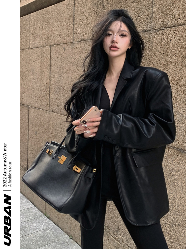 Главная страница > Модная кожаная куртка Qicheng для женщин, осень 2025, новая модель, воротник-стойка, байкерская куртка, топ с длинным рукавом, женская одежда для ранней осени