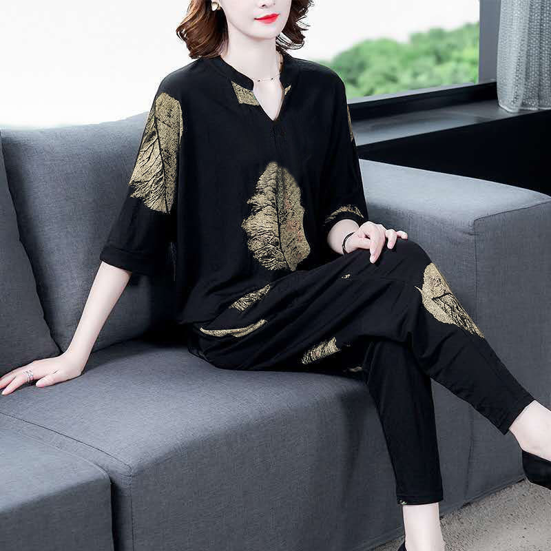 Главная страница > Летняя новая средняя и пожилая мама наряд Harlen большой размер набор летняя повседневная мода средний рукав набор из двух частей спортивной одежды для женщин