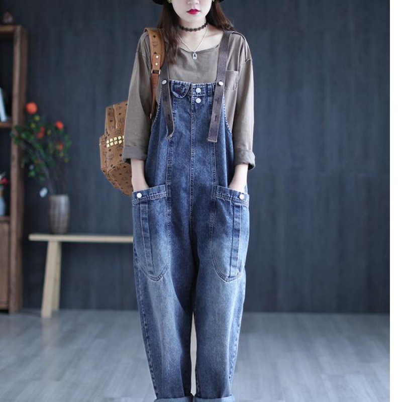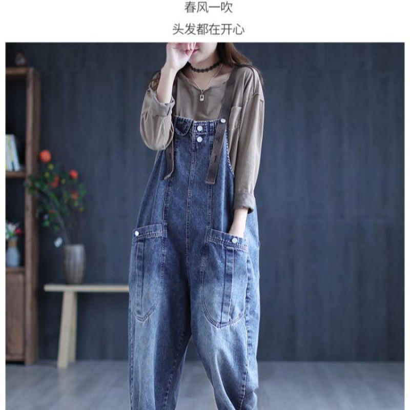Главная страница > Брюки на подтяжках Художественные летние джинсовые брюки на подтяжках женские свободные широкие брюки в стиле ретро больших размеров модные повседневные Гаремные Брюки