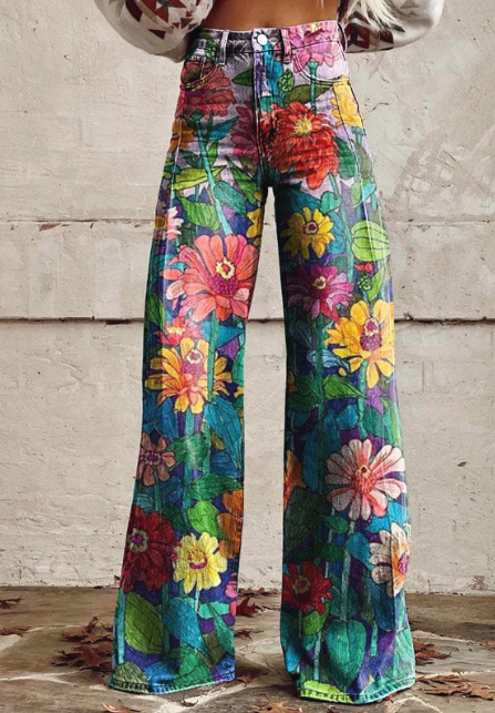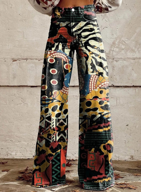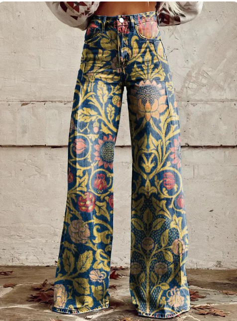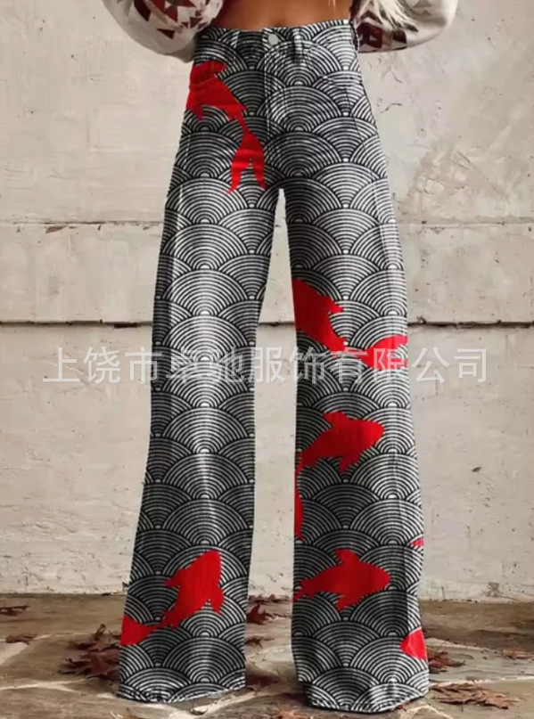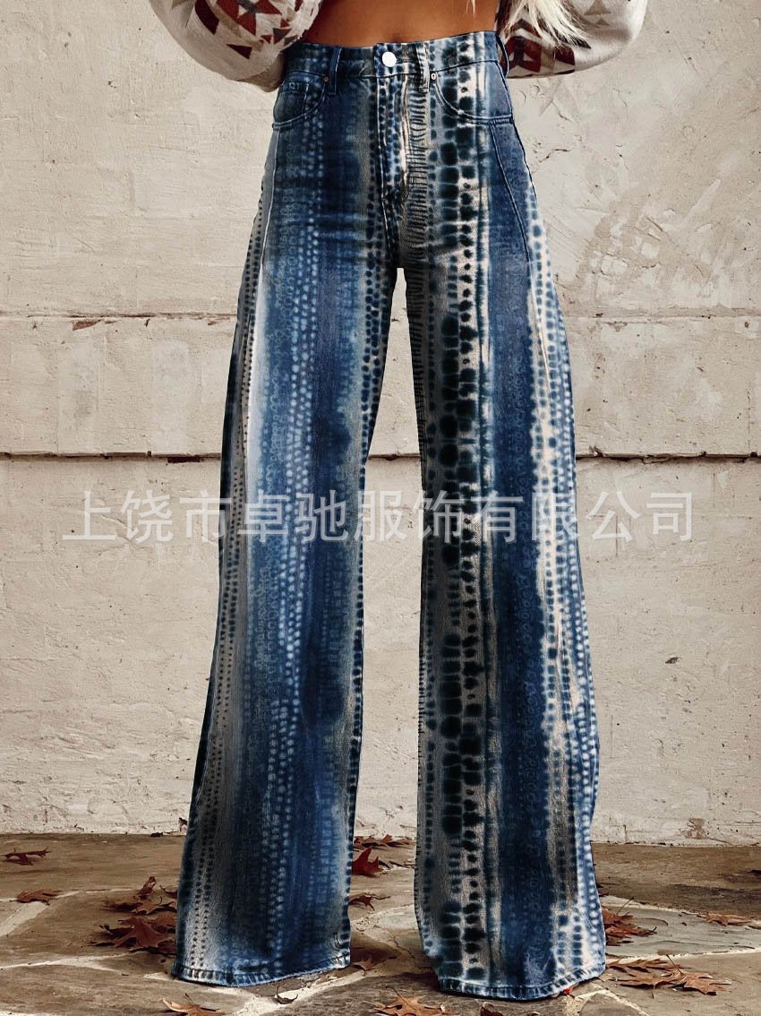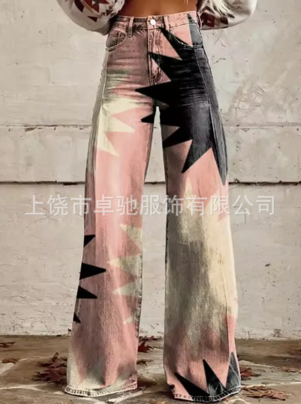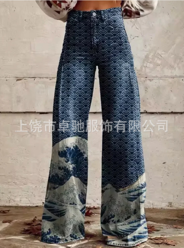 Главная страница > 2025 независимая станция Xiyin Европейские и американские женские повседневные брюки больших размеров для внешней торговли с принтом из искусственного денима, широкие модные женские брюки 3D