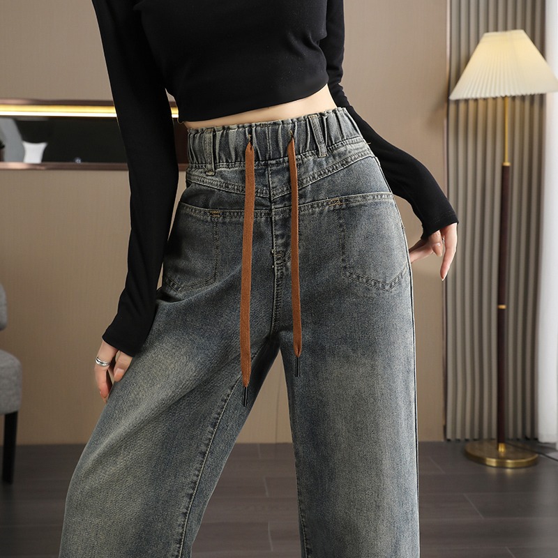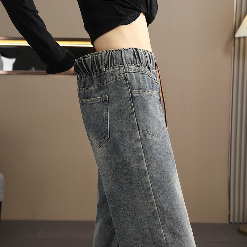 Модные широкие джинсы женские высокие талии весна и осень 2024 новые эластические талии большой размер прямой швабры широкие брюки