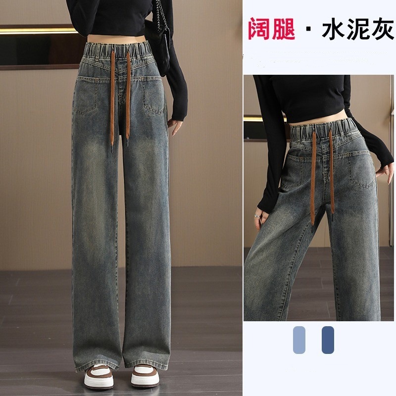 Главная страница > Модные широкие джинсы женские высокие талии весна и осень 2024 новые эластические талии большой размер прямой швабры широкие брюки