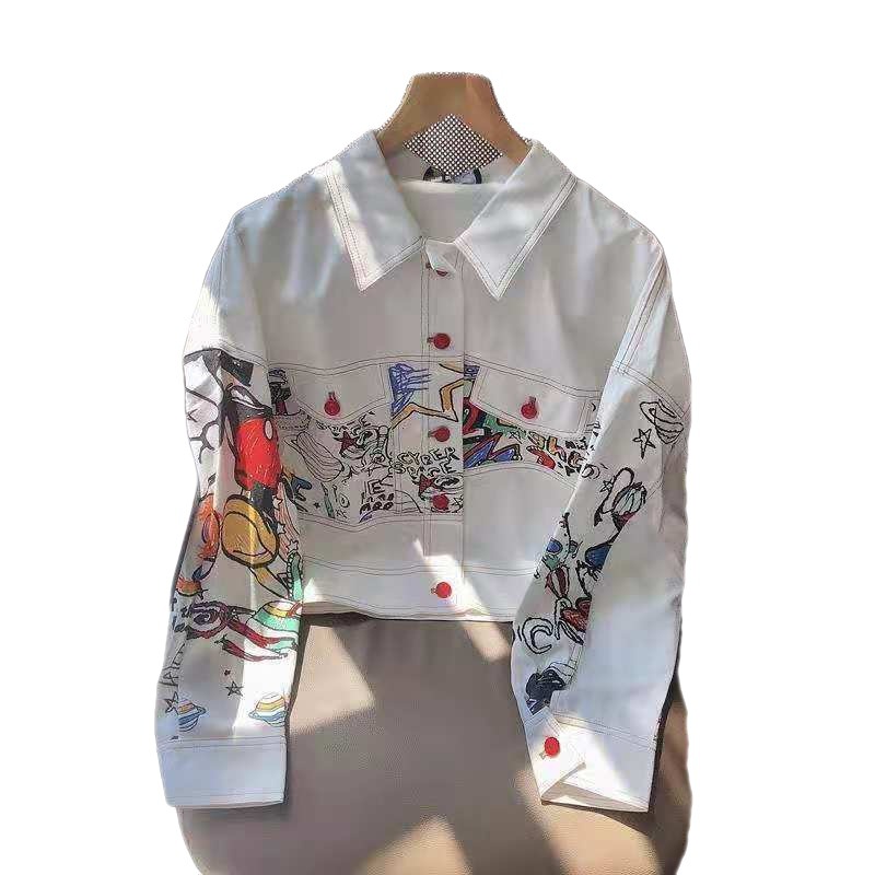 Главная страница > Джинсовое пальто, женская модная куртка с Отличительной отделкой в стиле граффити, Свободное пальто в Корейском стиле в студенческом стиле, женское короткое пальто в уличном стиле