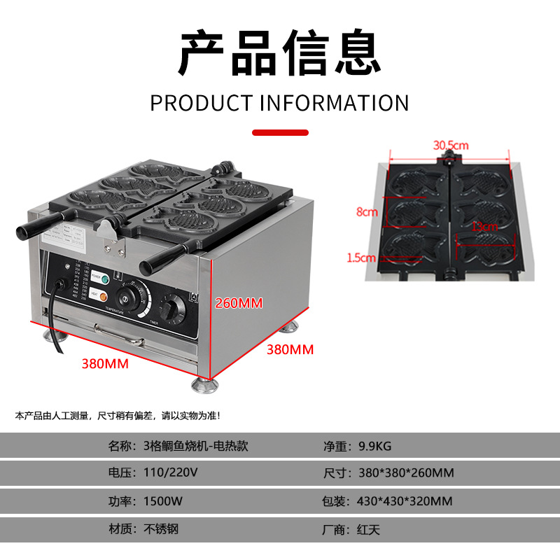 【Электрическое нагревание】3 двусторонние формы для тайяки