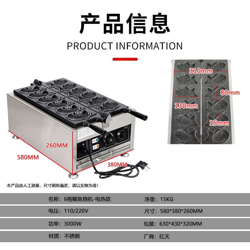 【Электрическое нагревание】6 двусторонних форм для тайяки