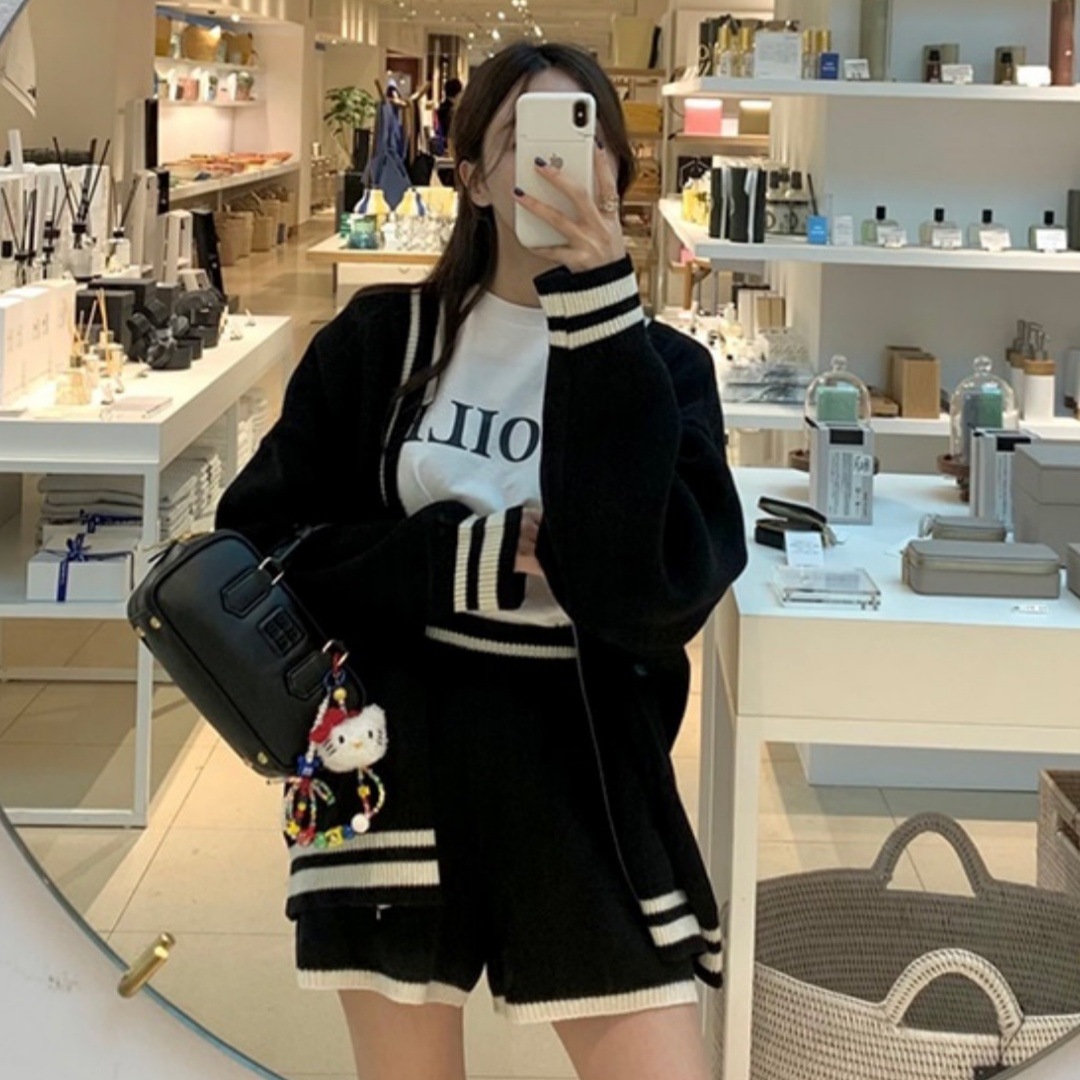 Главная страница > Южная Корея Донгдэмун сокращает возраст свободного vi-vi-vi-vi-vi-sheet цвет-молния трикотажный кардиган-свитер женские шорты с высокой талией