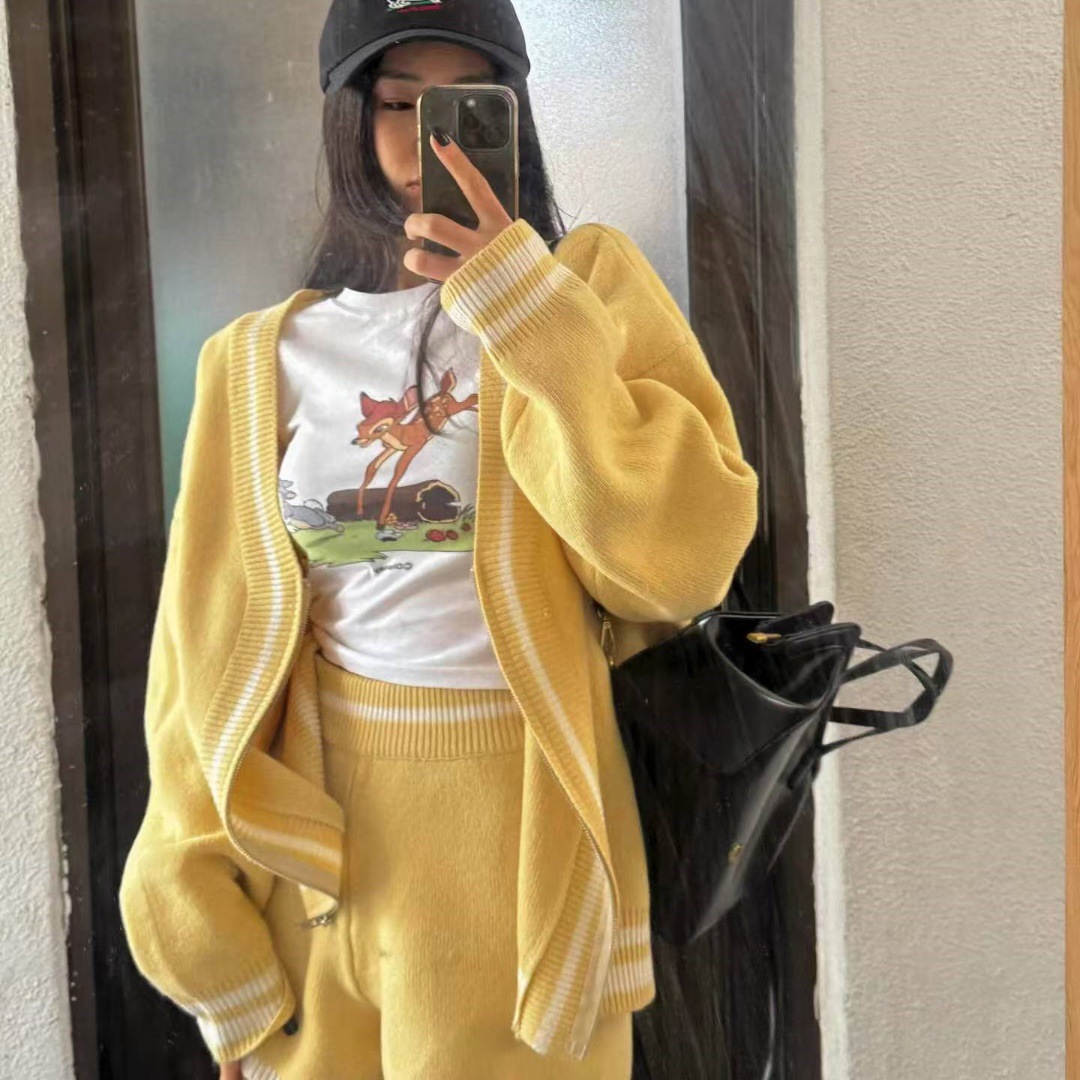 Южная Корея Донгдэмун сокращает возраст свободного vi-vi-vi-vi-vi-sheet цвет-молния трикотажный кардиган-свитер женские шорты с высокой талией