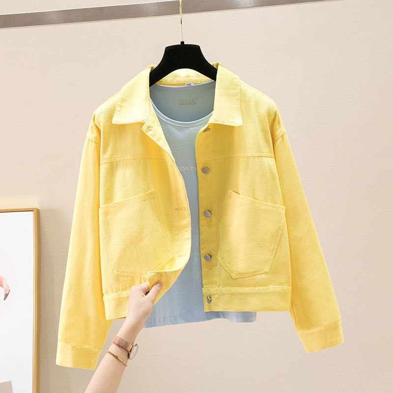 2025 новый весенний и осенний цветной джинсовый пиджак женский короткий свободный корейский BF куртка студенческий топ кардиган