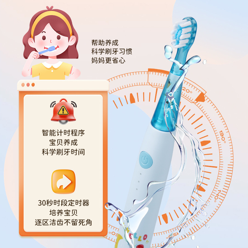 Детская электрическая зубная щетка, оптовая продажа, мягкая щетина, головка щетки не повреждает зубы, чистка микропузырьков, защита для зубов, умный таймер для детей