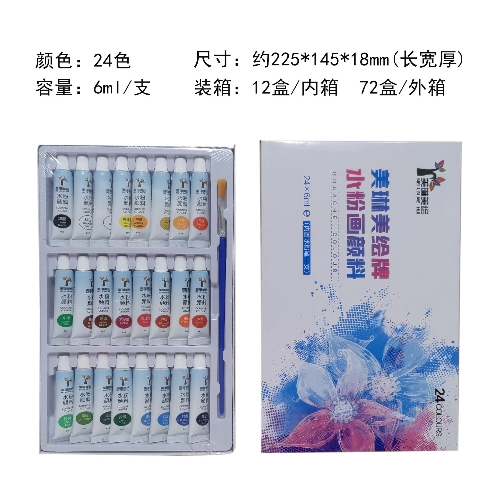 Meilin 24-цветная гуашь, 18-цветная портативная детская 6 мл гуашь, кисть
