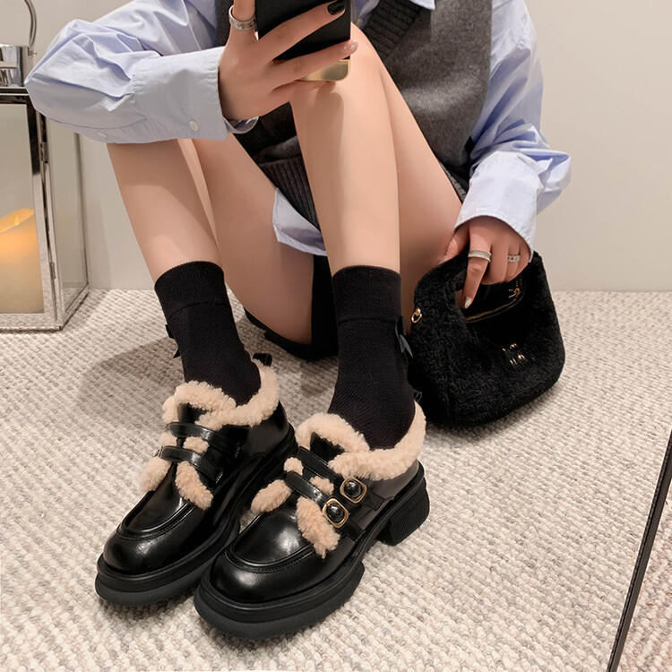 Главная страница > Теплые меховые туфли на плоской подошве в британском стиле для женщин на осень и зиму, увеличивающие лоферы на толстой подошве, коричневые маленькие кожаные туфли, рабочая одежда, женская обувь большого размера