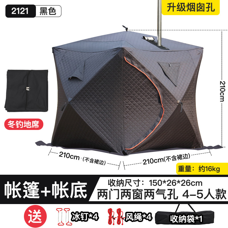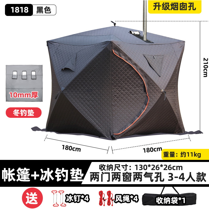 【3-4 человека】 Черный укрытие для подледной рыбалки + коврик для подледной рыбалки [с отверстием для дымохода]