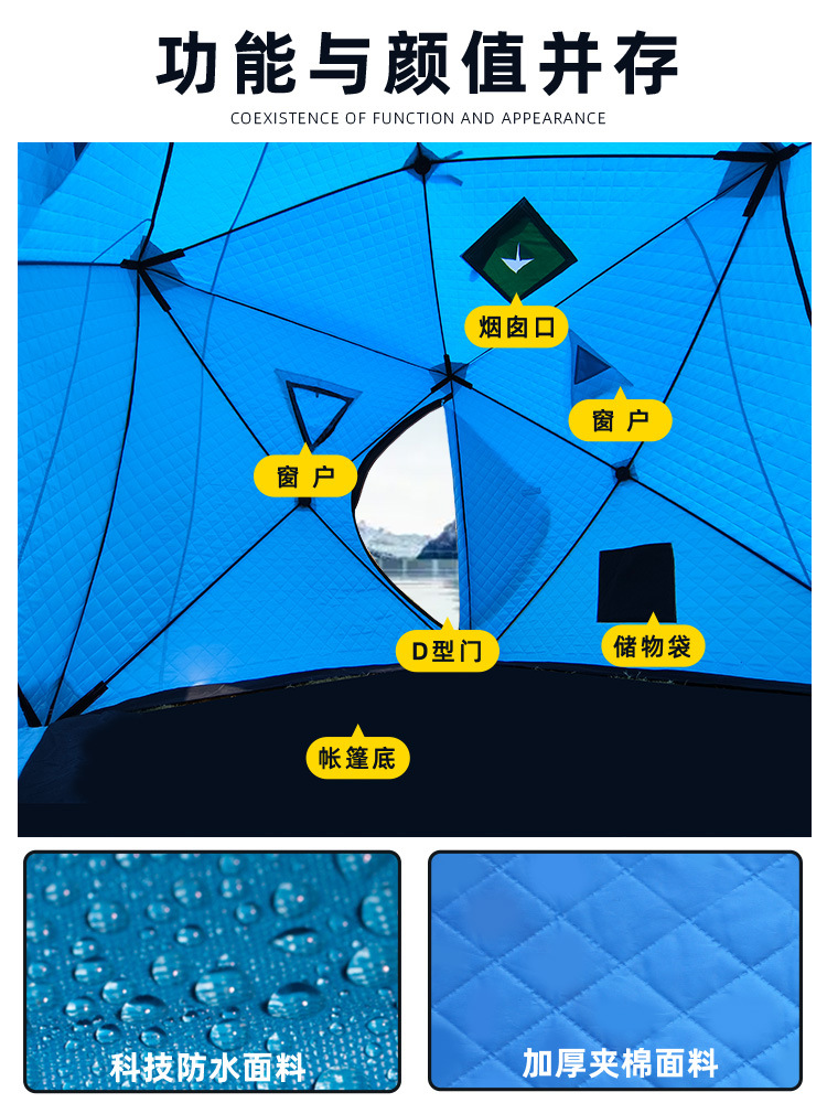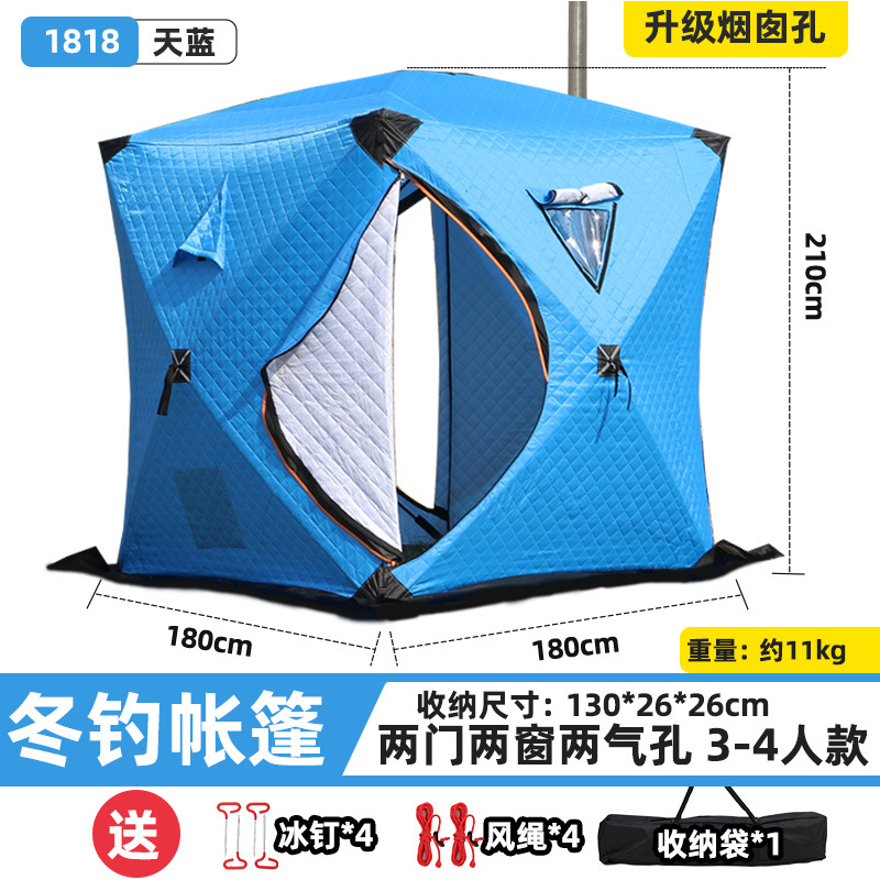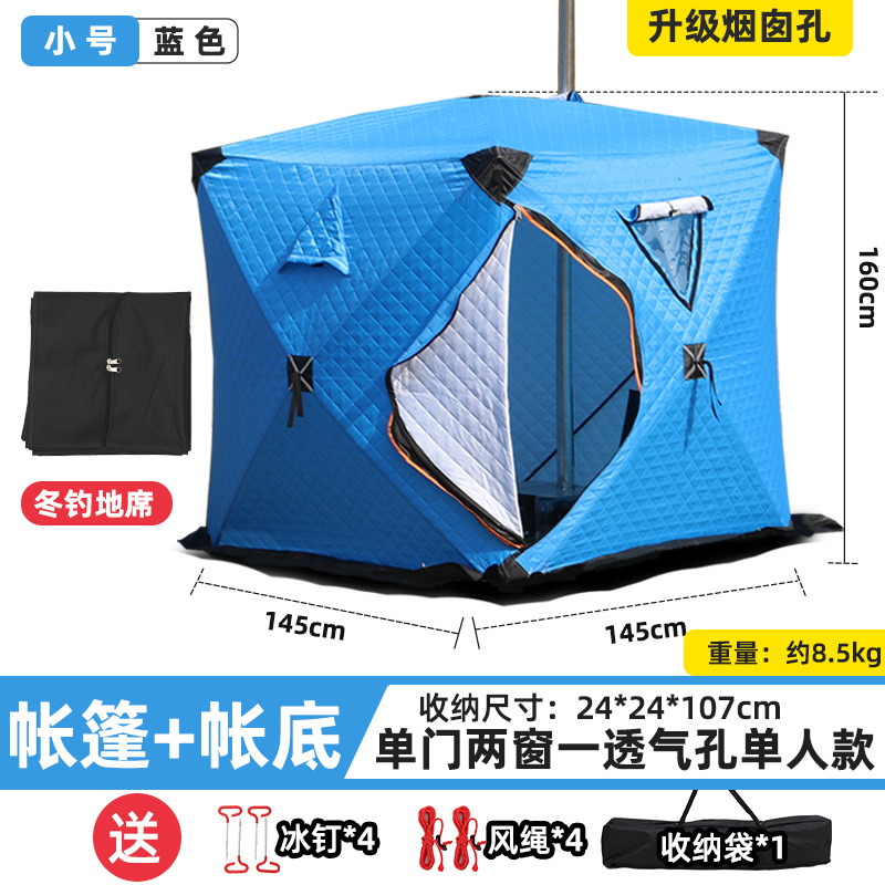 【1-2 человека】 Ледяной укрытие для рыбалки небесно-голубого цвета (с отверстием для дымохода)