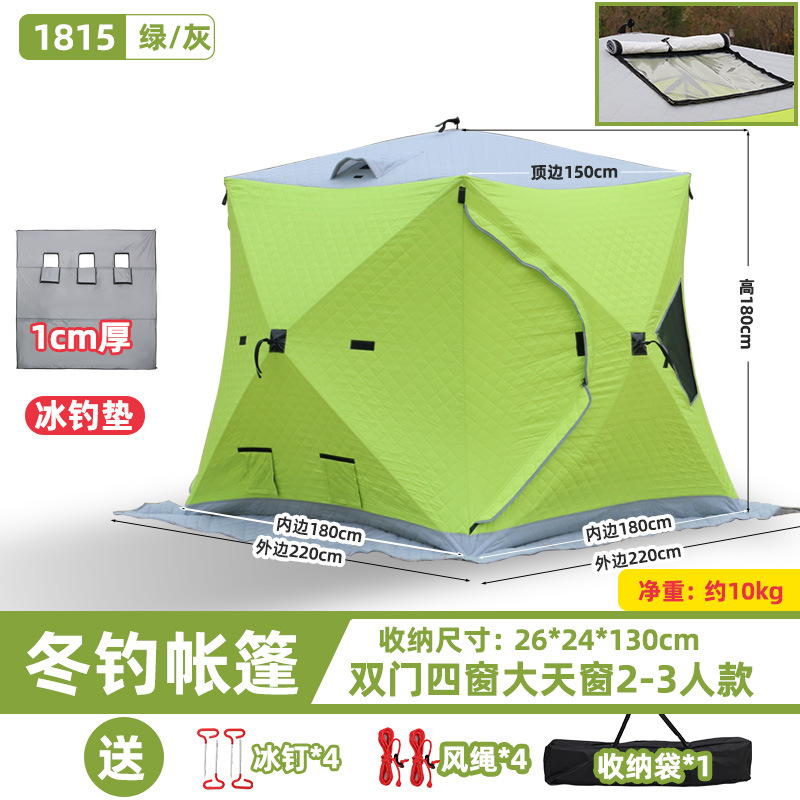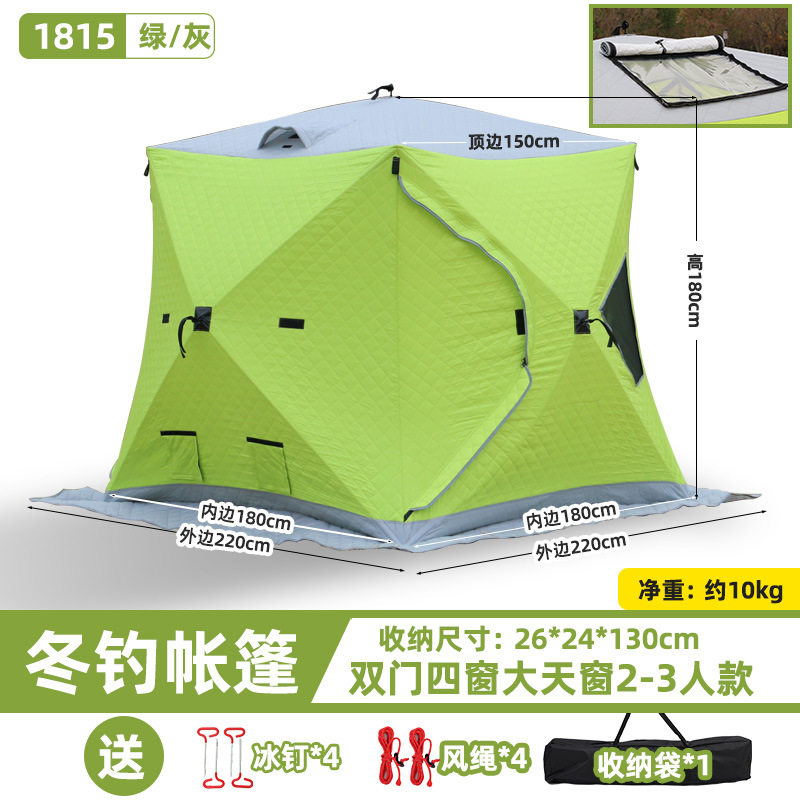 [2-3 человека] 1.8m зеленые и серые двойные двери + коврик для подледной рыбалки [с мансардным окном]