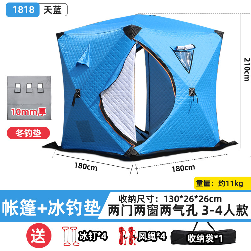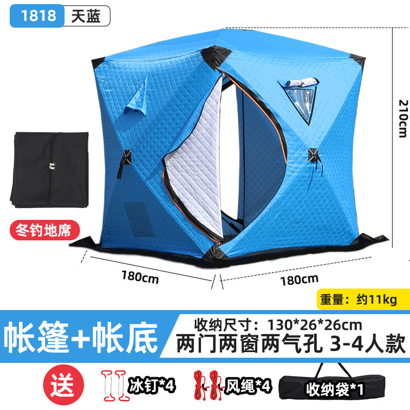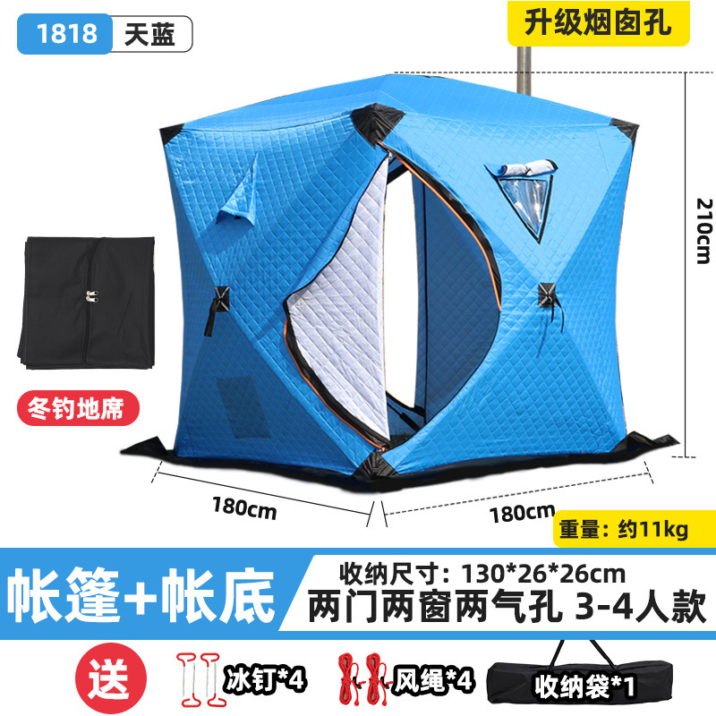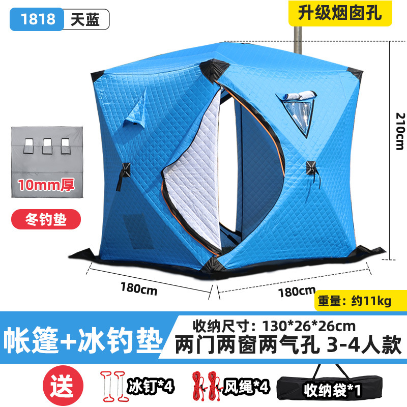 [3-4 человека] 1.8m небесно-голубой + коврик для подледной рыбалки [с отверстием для дымохода]