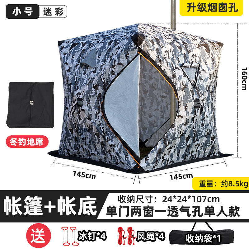 [3-4 человека] 1.8m камуфляж + коврик для подледной рыбалки [с отверстием для дымохода]