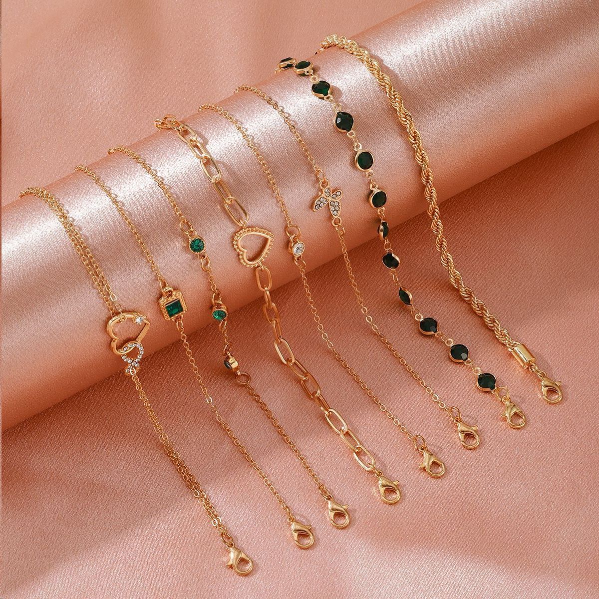 Главная страница > Трансграничные горячие продажи европейские и американские браслеты ins Ретро инкрустированный зеленый бриллиант квадратный браслет набор бриллиантов бабочка любовь браслет 5 шт.